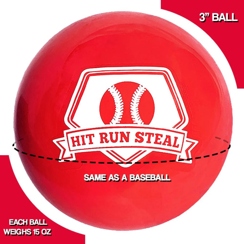 3-Pack Weighted practice balls are for baseball or/and softball batting practice. The 3-inch weighted baseball is a great training and warm-up hitting and throwing aid. Hit Run Steal weighted balls are designed to give you instant feedback on your baseball or softball swing. The heavy weighted ball allows you to generate more power in your swing which allows you to...