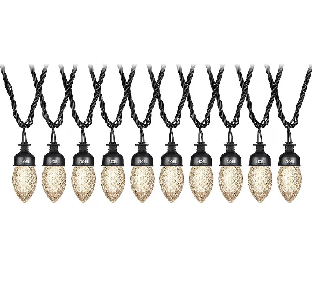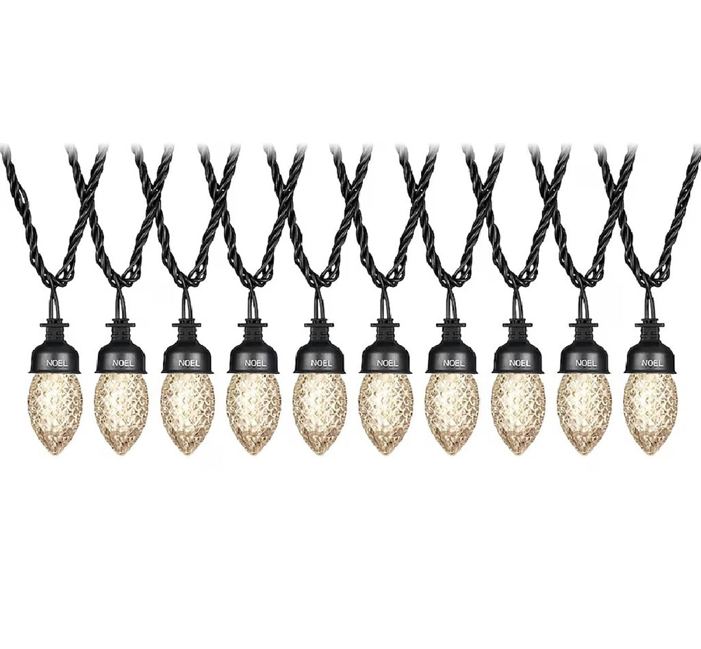 Put on a glittery display of sparkling lights this holiday season with a Diamond Sparkle light string. Each C9 bulb has a faceted cover that delivers a magnificent light effect. This set of 10 C9 bulbs includes classic white light and an astonishing 90 LED lights, with 9 per bulb. It's perfect for outdoor holiday decorating along rooflines, in trees...