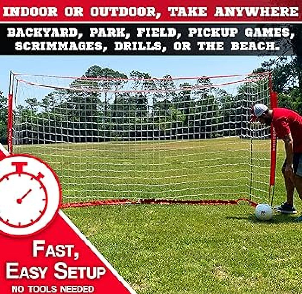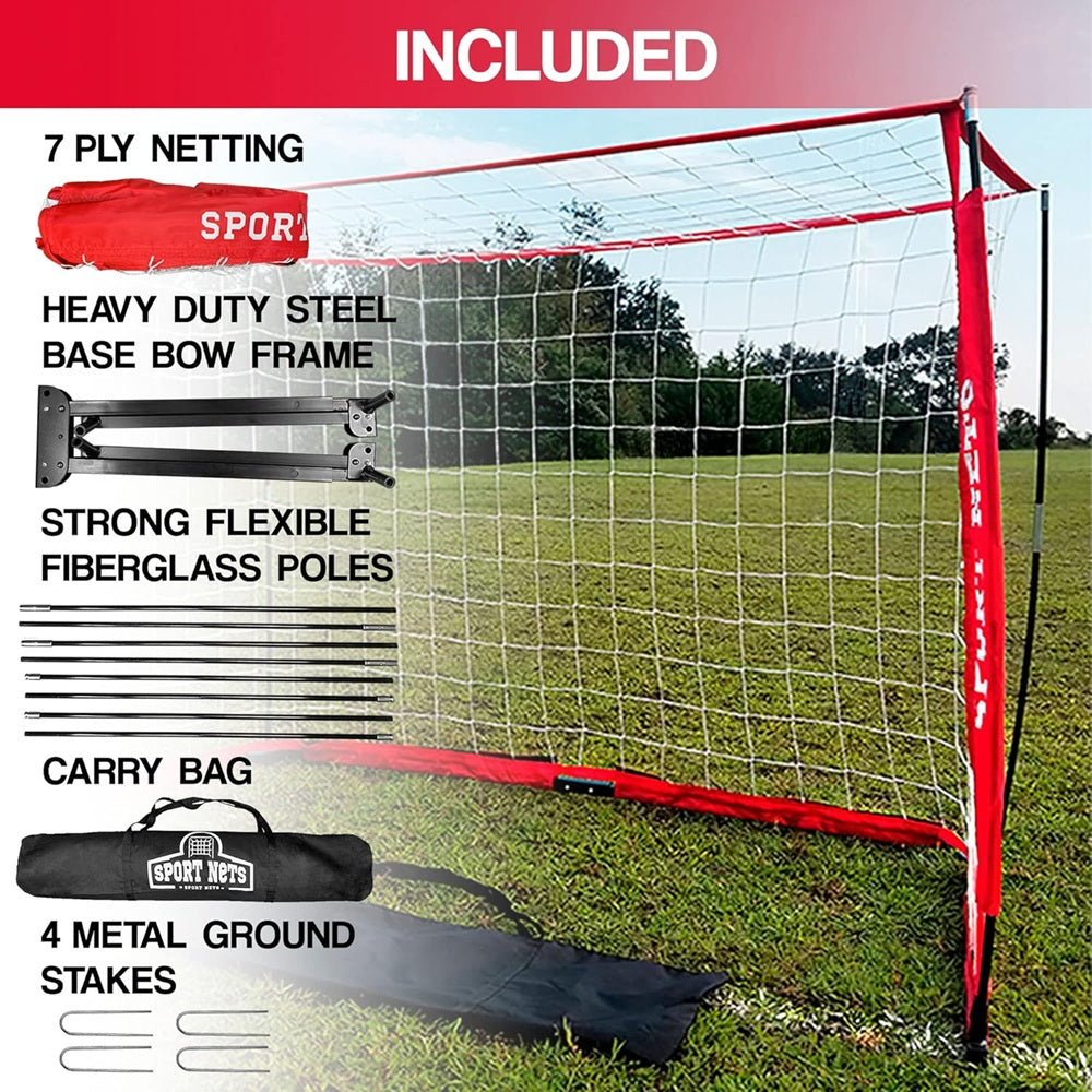 The Sport Nets portable soccer goal is high quality and durable. The design of the net allows it to absorb any level of soccer ball kicked or headed into the net. Sport Nets portable goal comes with a slightly elevated base frame. Sport Nets soccer net comes with its own carry bag making it easy to transport and set up...