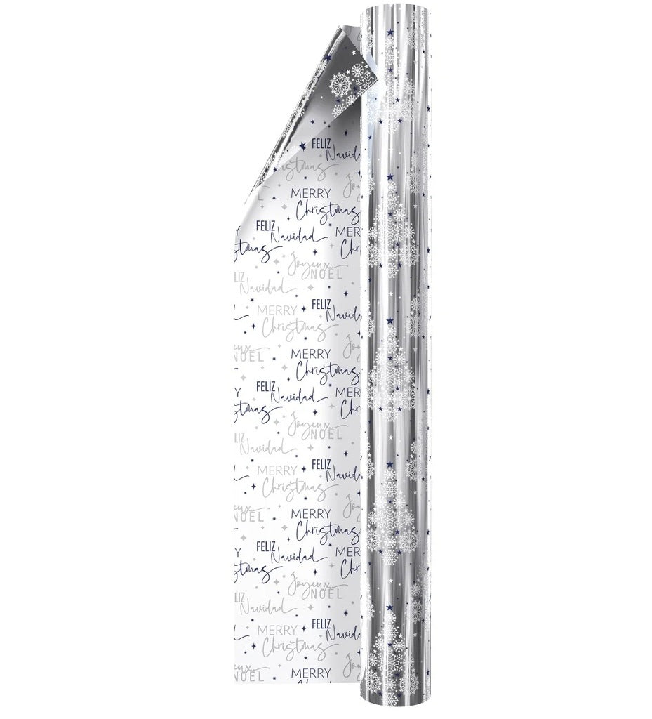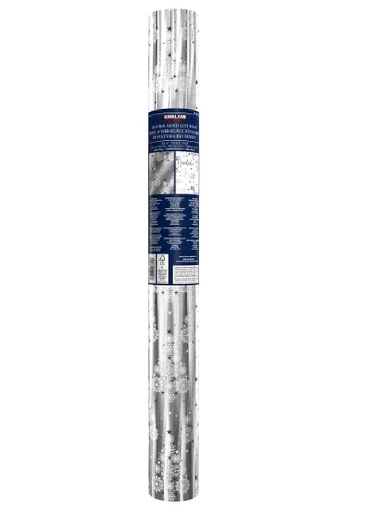 Delight all your family and friends by wrapping their presents in this premium Kirkland Signature double sided foil gift wrap. The roll includes 2 designs of gift wrap printed on foil material. Each pack consists of 2 designs in total so there is something for everyone. One foil roll consists of silver foil paper with white snowflake shaped into a...