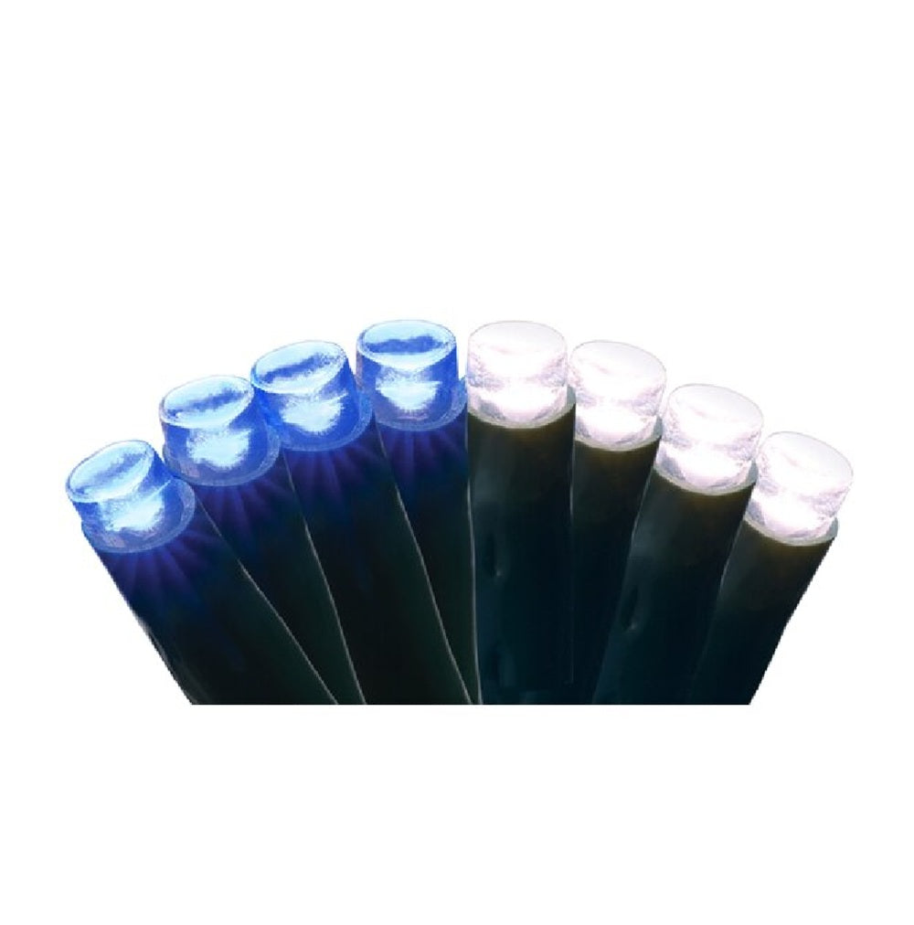 GE Color Choice LED MicroBright 150-count color changing light set on storage reel. Use the control box to choose between blue, cool white, or light show settings. 36-Inch lead wire, 3.5-inch lamp spacing, 4-inch coaxial end connector, 43.4-feet lighted length, and green cord set. Connect up to 4 sets. Features 8 in 1 Lighting Effects: blue, cool white or light...