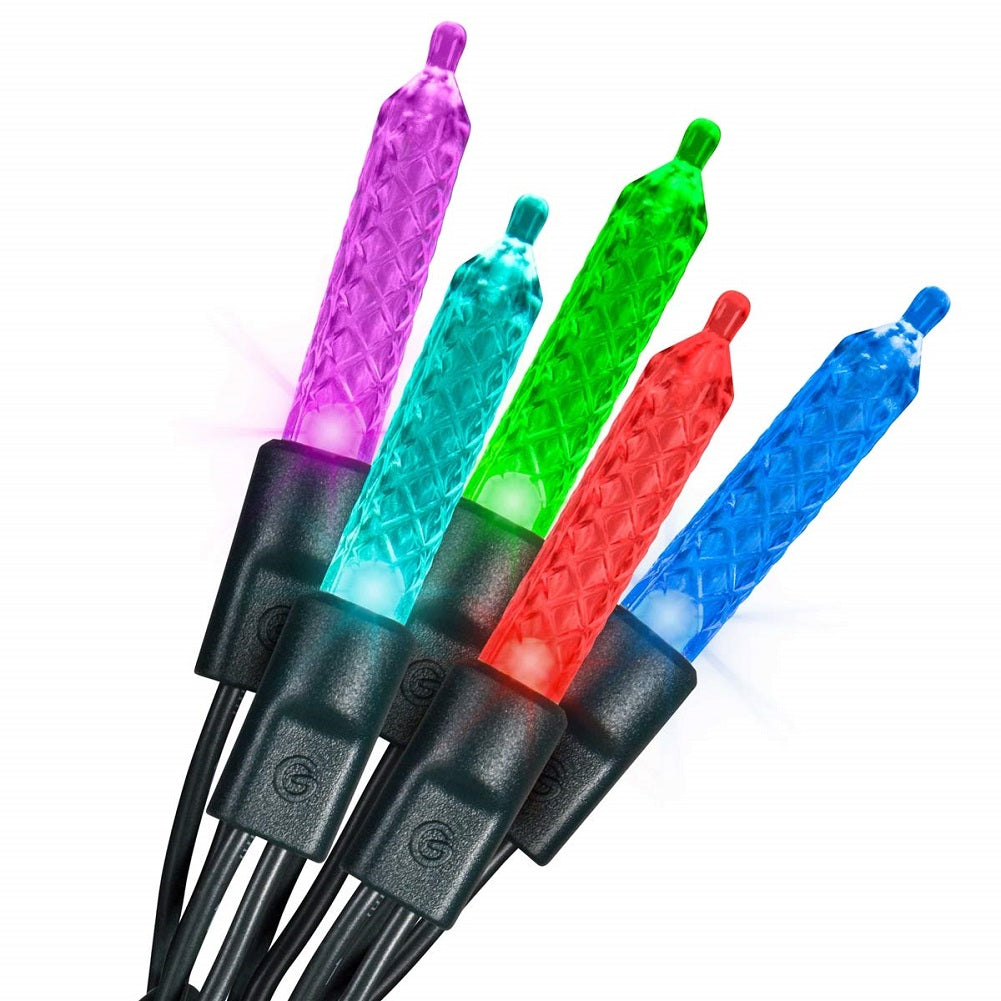 Decorate for the season with the beautiful GE Color Choice 150 LED Dual Color Swag Lights Multi or Warm White 10.6FT. These raspberry mini lights are dual color, chose between multi color or warm white lights. Decorating with the mini lights is easy with the 24-inch green lead wire with a green cord set with fused plug. Features 8 in...