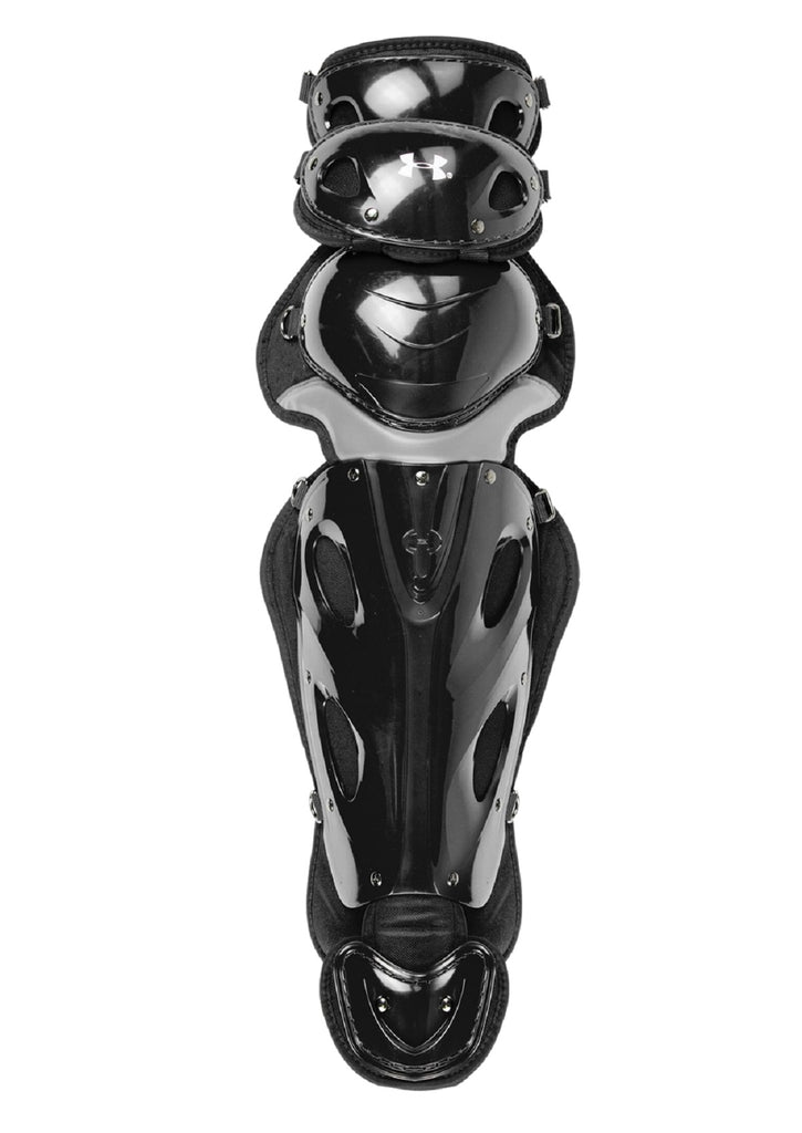 The Under Armour Adult Speedform Professional Catcher's Leg Guards 16.5" Black have been designed to help high school and college-level catchers be at their best while out on the field. The product comes with a charged foam molded knee, that creates an anatomical fit with adaptive support. This foam is comfortable and soft when resting on the knees. It also...