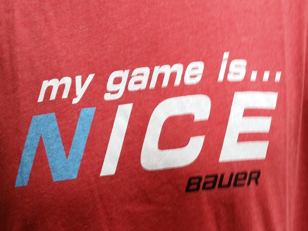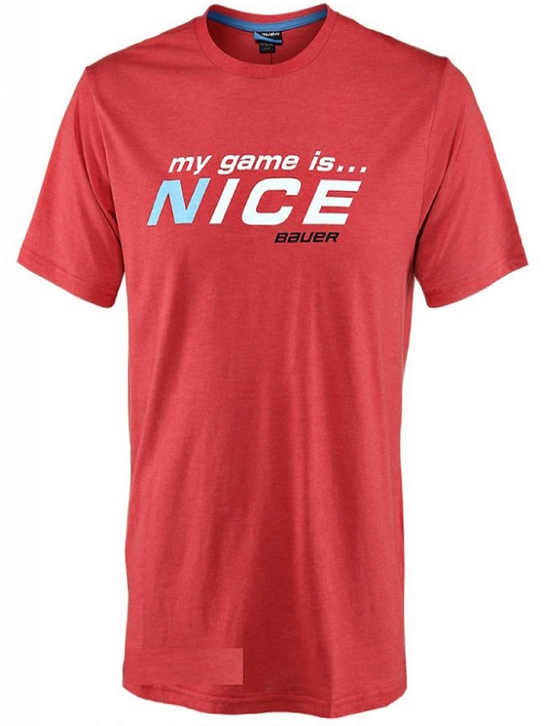 Retro look. Modern feel. This Bauer My Game is Nice Red Short Sleeve Men's T-Shirt, Large, is an excellent pick-up for your closet. Hockey apparel that’s perfect for hanging with the guys after the big game. The My Game Is Nice Tee by Bauer features a screen print front graphic and makes the perfect addition to your pre- or post-game...