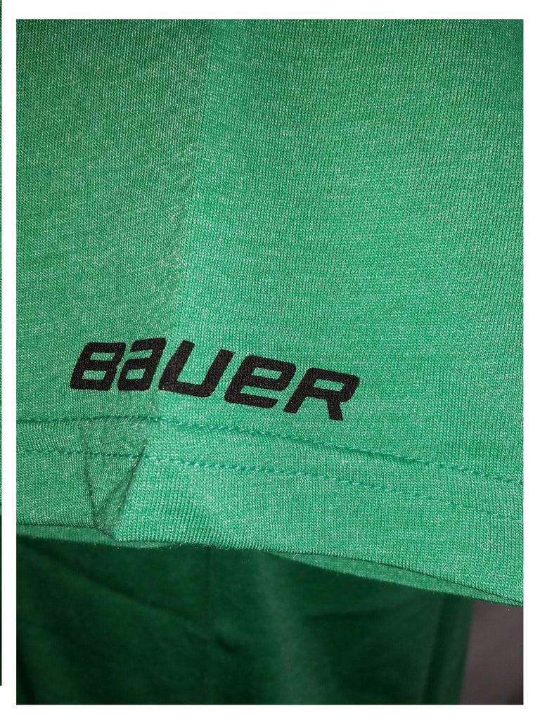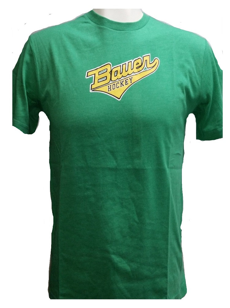 Retro look. Modern feel. This Bauer Short Sleeve Varsity Youth Green T-Shirt, Medium, is an excellent pick-up for your closet. Hockey apparel that’s perfect for hanging with the guys after the big game. The green Bauer Varsity Logo shirt features a screen print front graphic with the Bauer logo on the sleeve and makes the perfect addition to your pre-...