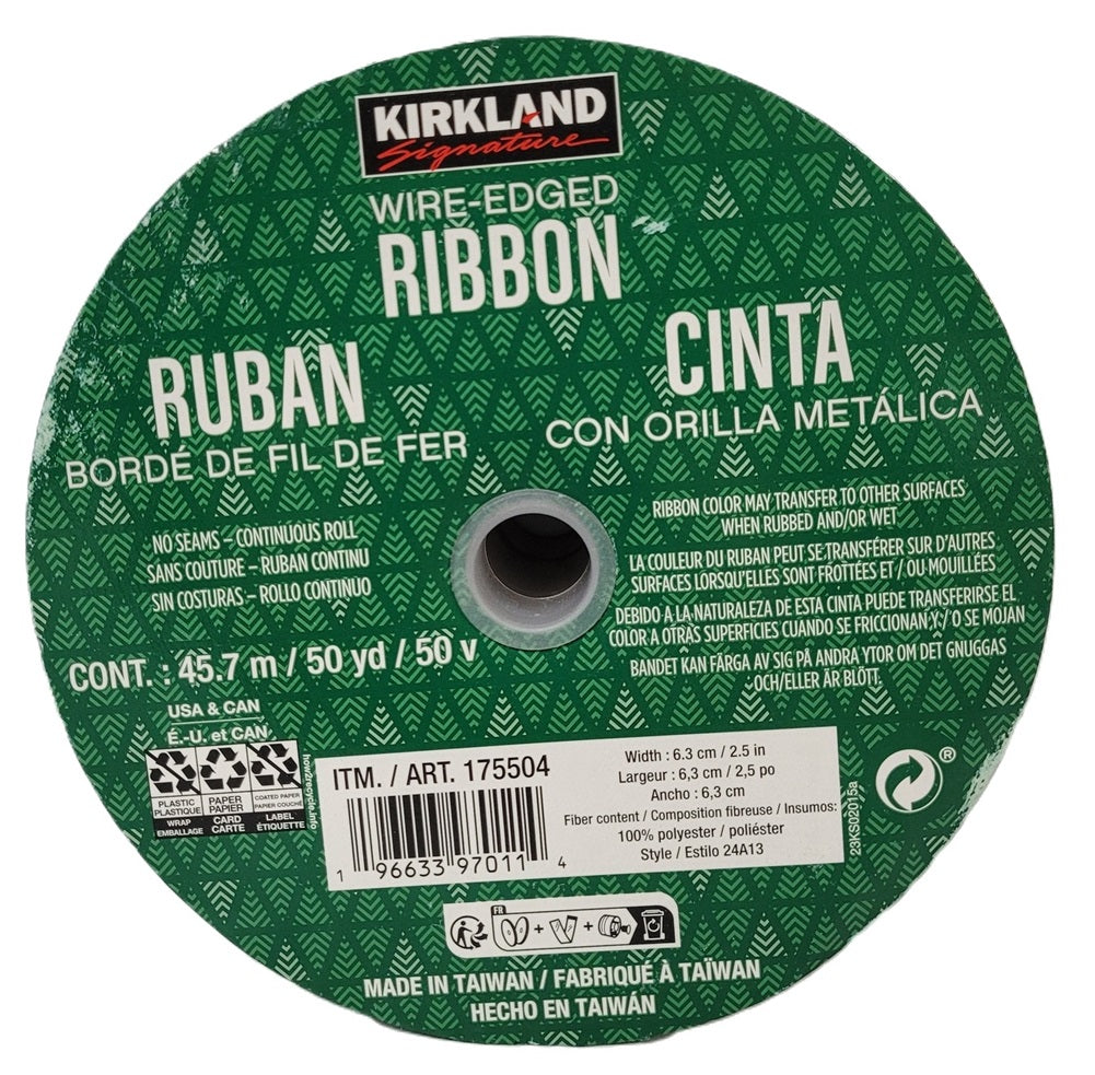 This beautiful spool of ribbon will create beautiful bows for your Christmas gifts or to adorn your Christmas tree, mantle or stairway. This Premium Stylish Holiday Ribbon has been carefully selected from Kirkland signature. The Kirkland Signature Wire Edged Silver Metallic Ribbon 50 yards x 1.5 inches is beautiful from its high-quality to its finish-stitched edges. Made from the finest nylon and metallic fabric, this ribbon is finely woven and lasts long.