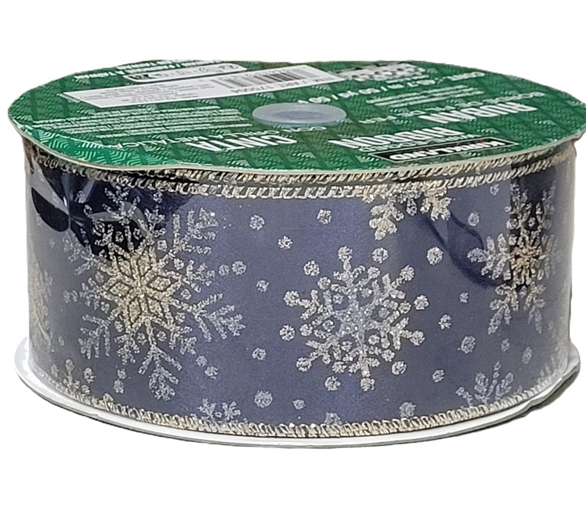 The Wire-Edged 2.5-inch Navy Blue Ribbon with Gold Snowflake and Glitter Accents is a beautiful spool of ribbon to create beautiful bows for your Christmas gifts or to adorn your Christmas tree, mantle or stairway. This premium stylish holiday ribbon has been carefully selected. This navy blue ribbon features glitter gold snowflake with gold glitter accents is high-quality, finish-stitched gold edges. Made from durable, fine polyester fabric, finely woven and lasts a long time. The ribbon is wire-edged perfect for crafts, gift packaging, and more. 2.5-inch width X 50 yards length.