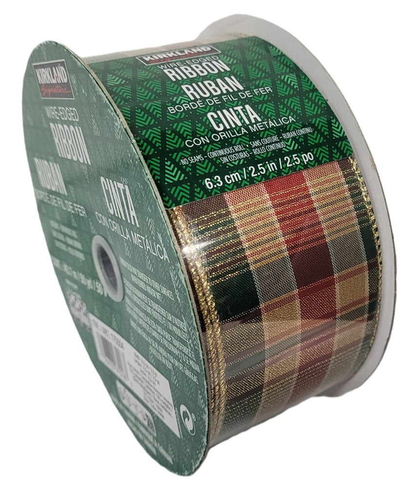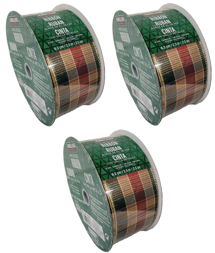 The Kirkland Signature Wire-Edged Holiday Plaid Red, Gold, Green Ribbon 2.5-inch W X 50 Yards (3-Pack) is beautiful spool of ribbon will create beautiful bows for your Christmas gifts or to adorn your Christmas tree, mantle or stairway. This Premium Stylish Holiday Ribbon has been carefully selected from Kirkland Signature. This holiday ribbon is plaid red, green and gold beautiful...