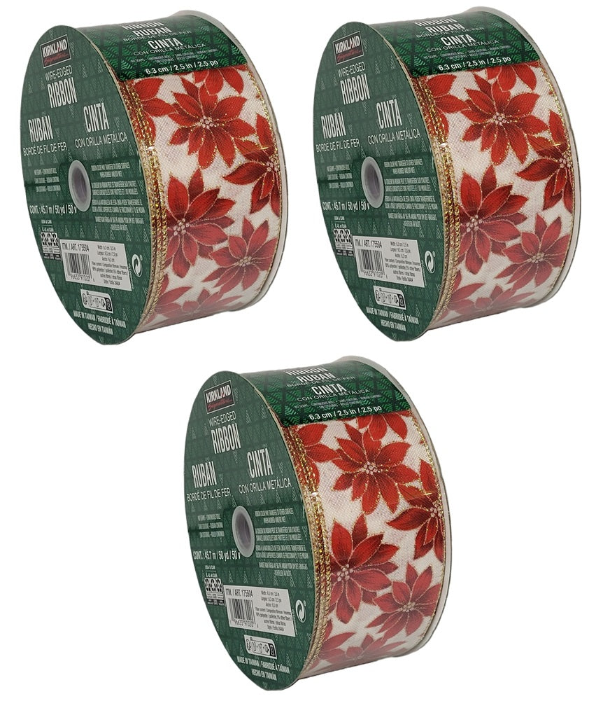 The Kirkland Signature Wire-Edged White Ribbon with Red Poinsettias 2.5-inch W X 50 Yards (3-Pack) is beautiful spool of ribbon will create beautiful bows for your Christmas gifts or to adorn your Christmas tree, mantle or stairway. This Premium Stylish Holiday Ribbon has been carefully selected from Kirkland Signature. This white ribbon with red poinsettias is beautiful with its high-quality,...