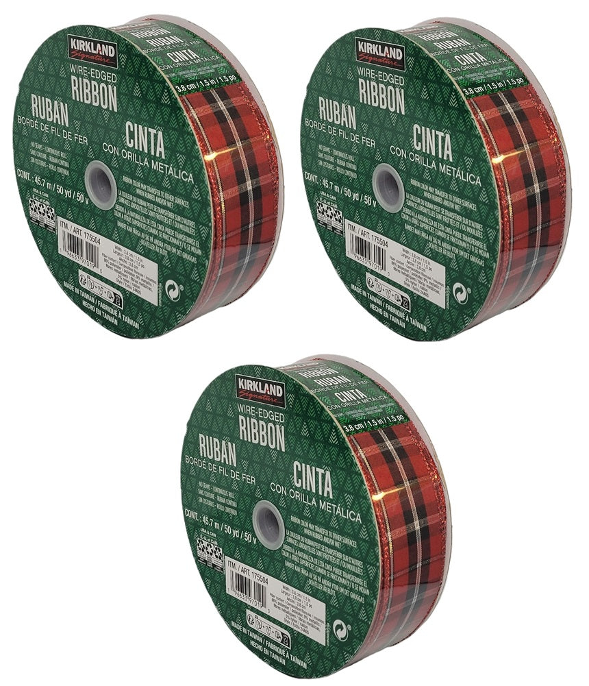 The Kirkland Signature Wire Edged Red, Black Plaid with Silver Ribbon 50 yards X 1.5 inches (3-Pack) is beautiful spool of ribbon will create beautiful bows for your Christmas gifts or to adorn your Christmas tree, mantle or stairway. This Premium Stylish Holiday Ribbon has been carefully selected from Kirkland Signature. This red and black plaid ribbon features a silver...