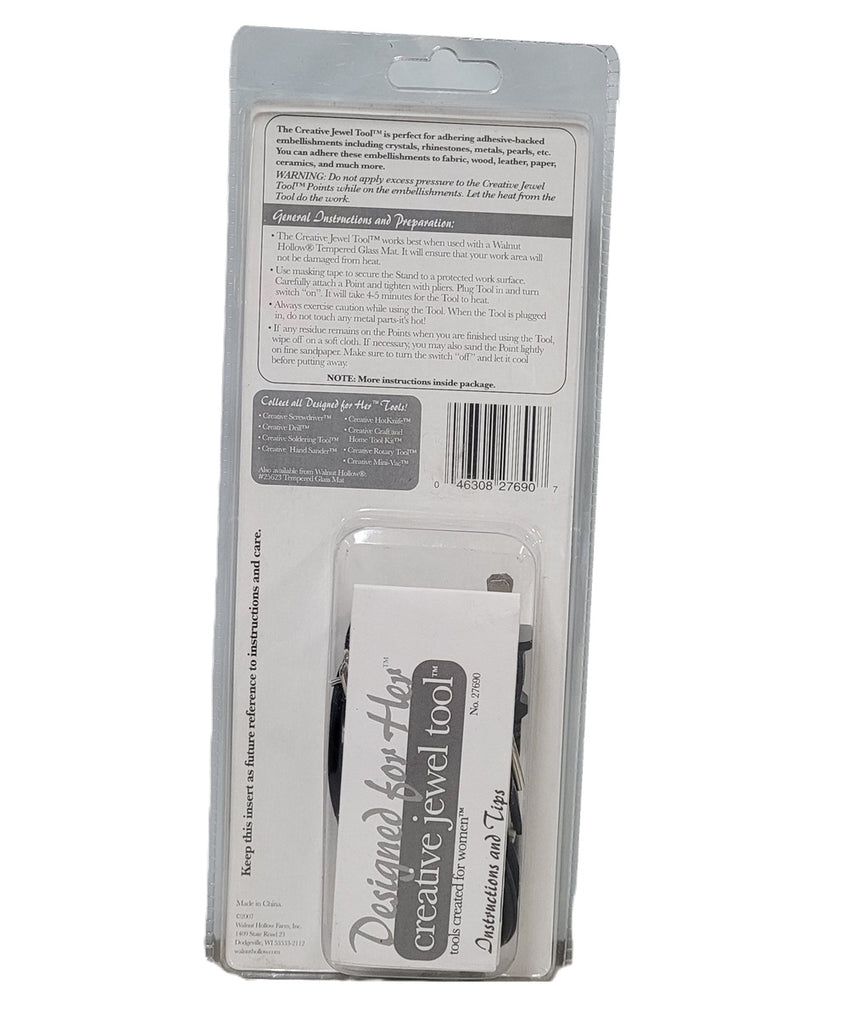 The Jewel Tool is perfect for adhering adhesive backed embellishments including Crystals, Rhinestones and Pearls to almost any surface including wood, leather, fabric and glass. The UL approved tool heats to 425? F, includes a convenient on/off switch, tweezers to set the embellishments, tool stand and 3 points. The 3 differently sized points cover all your needs and are not...