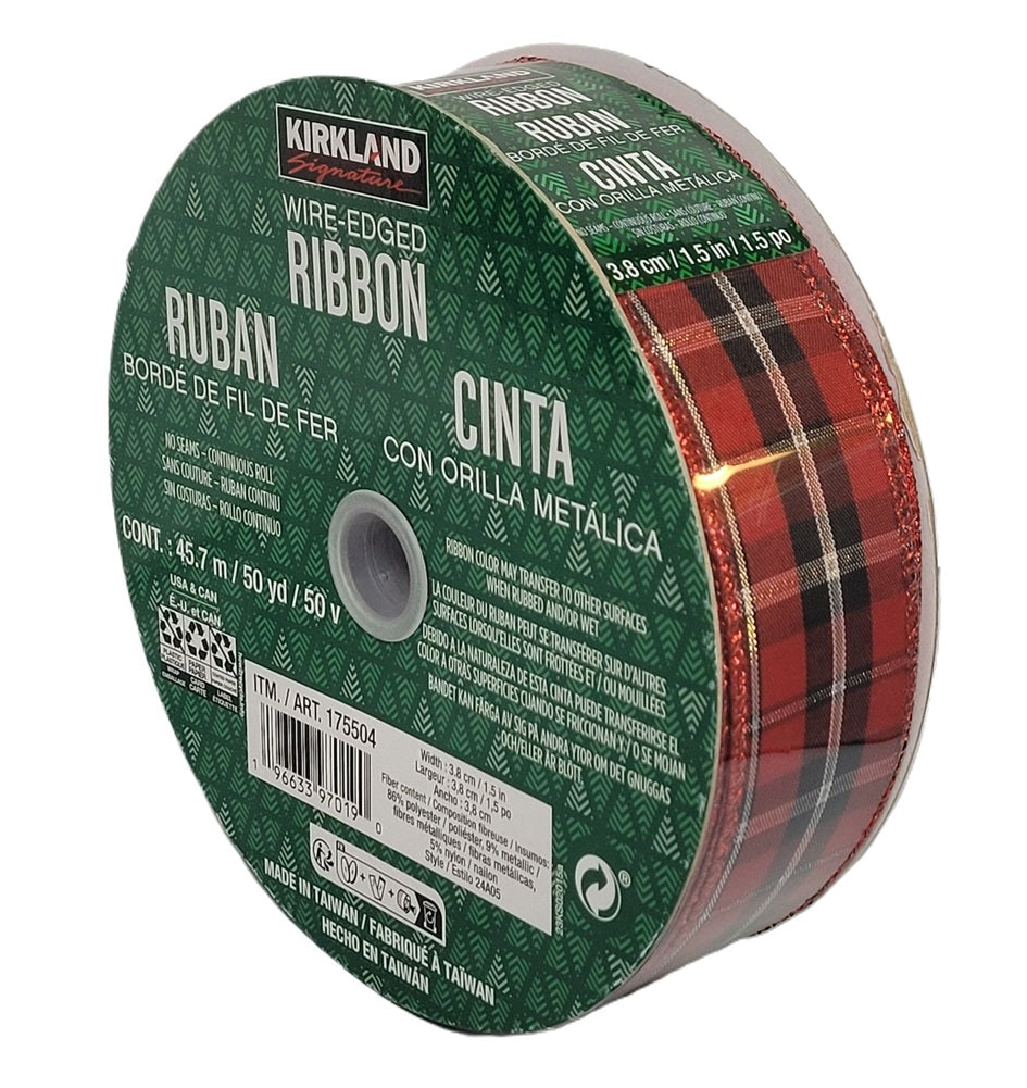 The Kirkland Signature Wire Edged Red, Black Plaid with Silver Ribbon 50 yards X 1.5 inches is beautiful spool of ribbon will create beautiful bows for your Christmas gifts or to adorn your Christmas tree, mantle or stairway. This Premium Stylish Holiday Ribbon has been carefully selected from Kirkland Signature. This red and black plaid ribbon features a silver accent...
