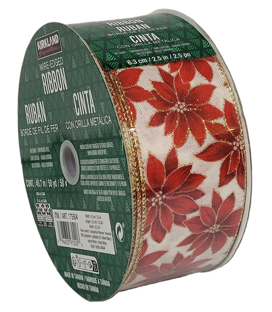 The Kirkland Signature Wire-Edged White Ribbon with Red Poinsettias 2.5-inch W X 50 Yards (3-Pack) is beautiful spool of ribbon will create beautiful bows for your Christmas gifts or to adorn your Christmas tree, mantle or stairway. This Premium Stylish Holiday Ribbon has been carefully selected from Kirkland Signature. This white ribbon with red poinsettias is beautiful with its high-quality,...