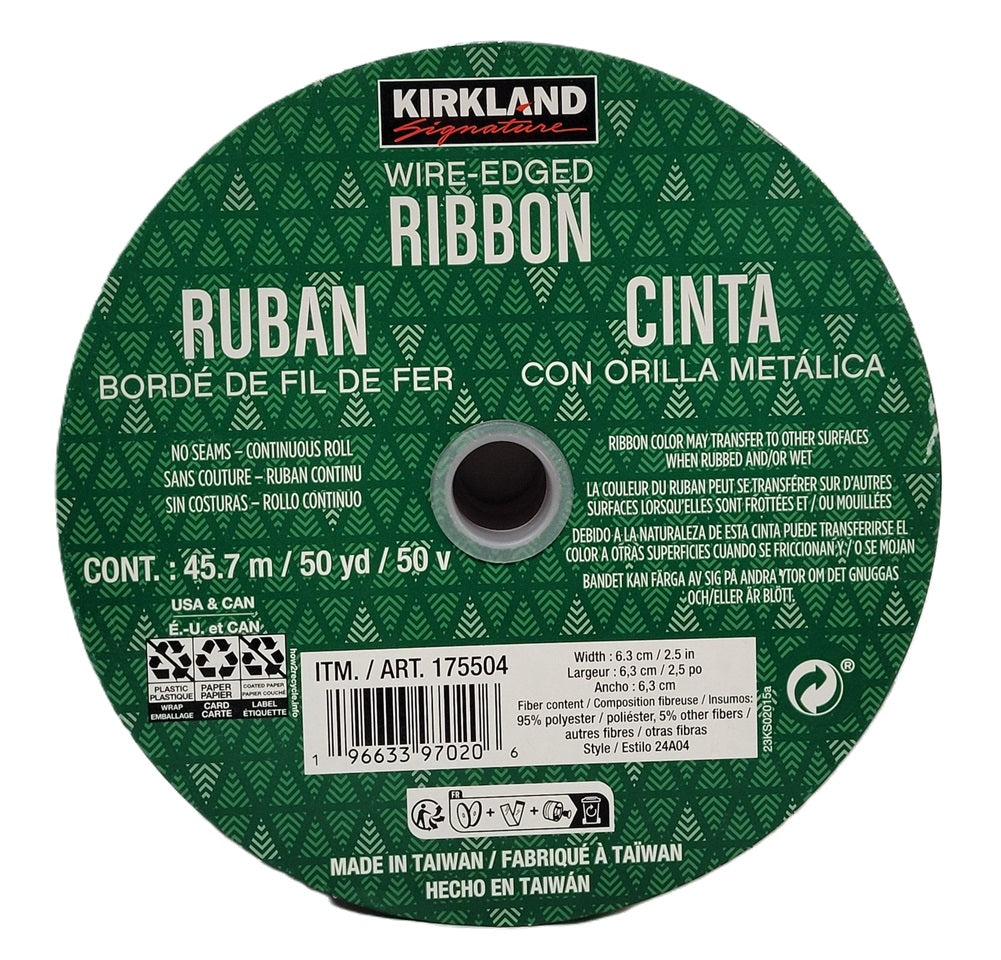 This beautiful spool of ribbon will create beautiful bows for your Christmas gifts or to adorn your Christmas tree, mantle or stairway. This Premium Stylish Holiday Ribbon has been carefully selected from Kirkland signature. This ribbon is beautiful from its high-quality to its finish-stitched silver edges. Made from the finest polyester fabric, this ribbon is finely woven and lasts long....