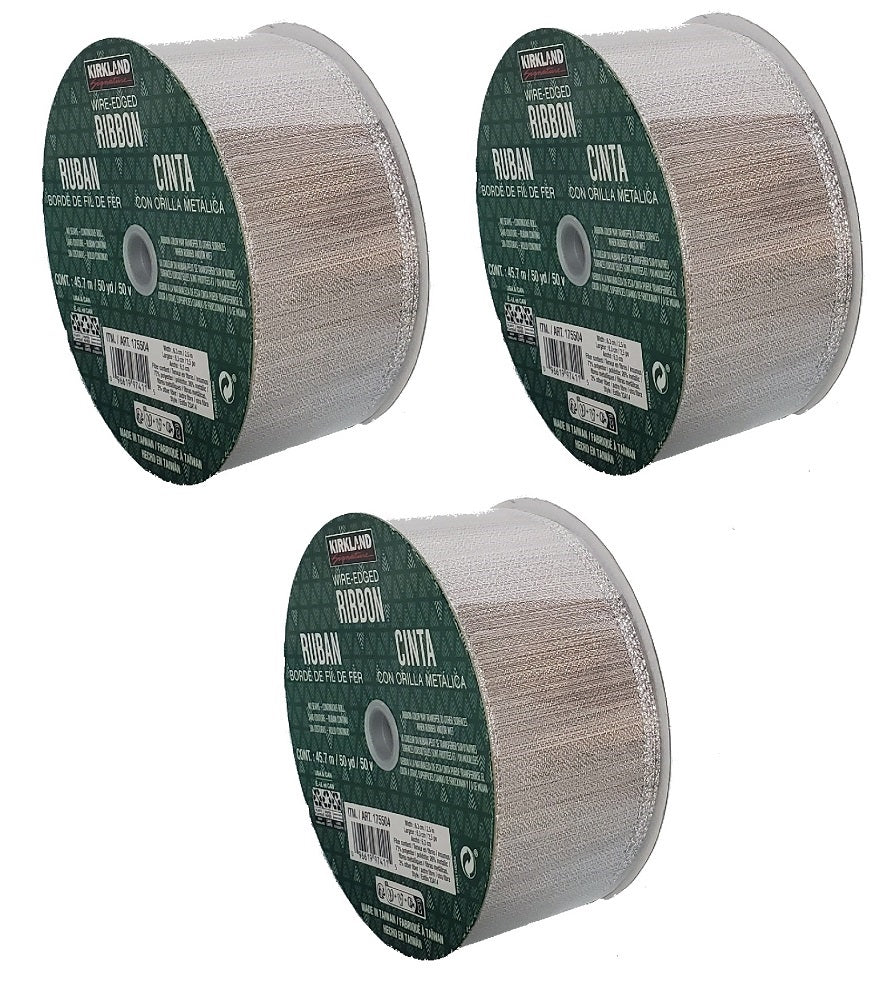 Get three beautiful 2.5-inch spool of metallic silver ribbon will create beautiful bows for your Christmas gifts or to adorn your Christmas tree, mantle or stairway. The Premium Stylish Holiday Ribbon has been carefully selected from Kirkland signature. The silver metallic ribbon is beautiful made with high-quality to its finish-stitched edges. Made from fine polyester and metallic fabric, the ribbon...