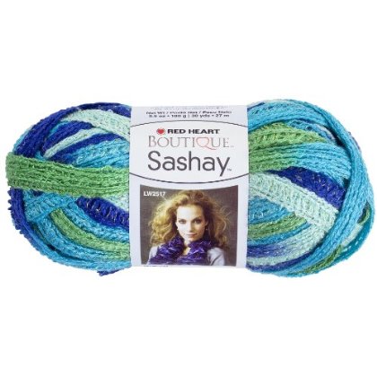 This Red Heart boutique sashay yarn is perfect for scarves, hats and all sorts of fun fashion accessories. A sassy 2-1/2 inch shimmering fishnet weave yarn. Made of 95-percent acrylic and 5-percent metallic polyester material. It is available for 6.5 mm knitting needle and 8 mm crochet hook. Care instructions are hand wash, dry flat, do not bleach, do not...