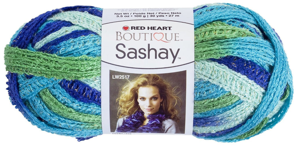 Red Heart-Boutique Sashay Sparkle Yarn. A new twist on Sashay! The holes are a little large which give it extra drape and the metallic edge has been amped up the finished scarf has an extra kick of sparkle! Weight category: 6. Content: 87% acrylic and 13% metallic, 3.5oz/100g, 35yd/32m. Gauge: 16s x 10r = 4in/10cm on size US9 knitting needles....