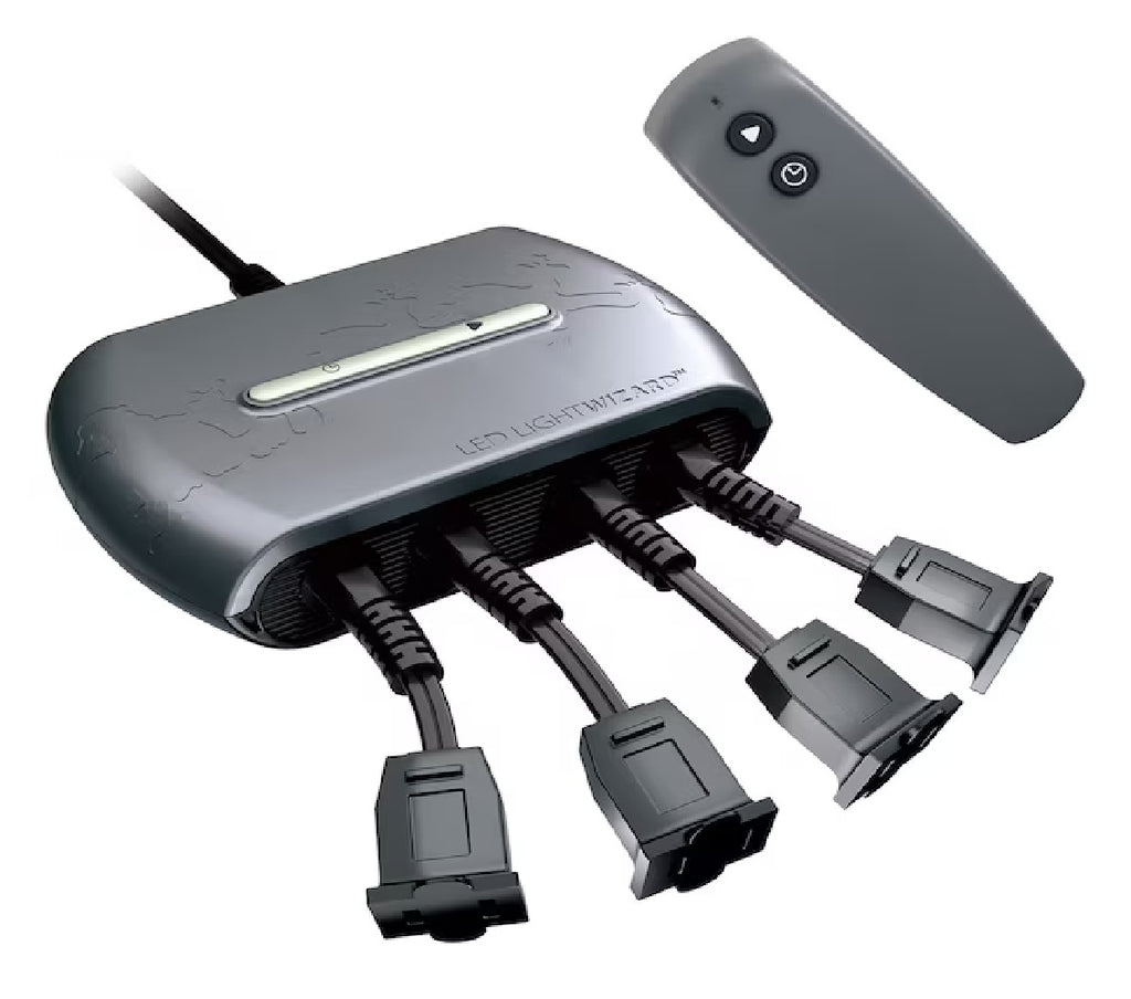 Look no further than the Illuminations™ light wizard to take your season’s celebrations to the next level. With 4 convenient plug-in outputs, this handy device instantly adds 10 dazzling motion effects to ordinary static LED lights. Just plug your lights in, sit comfortably in the couch and use the convenient remote to play around the shows and control the timer....