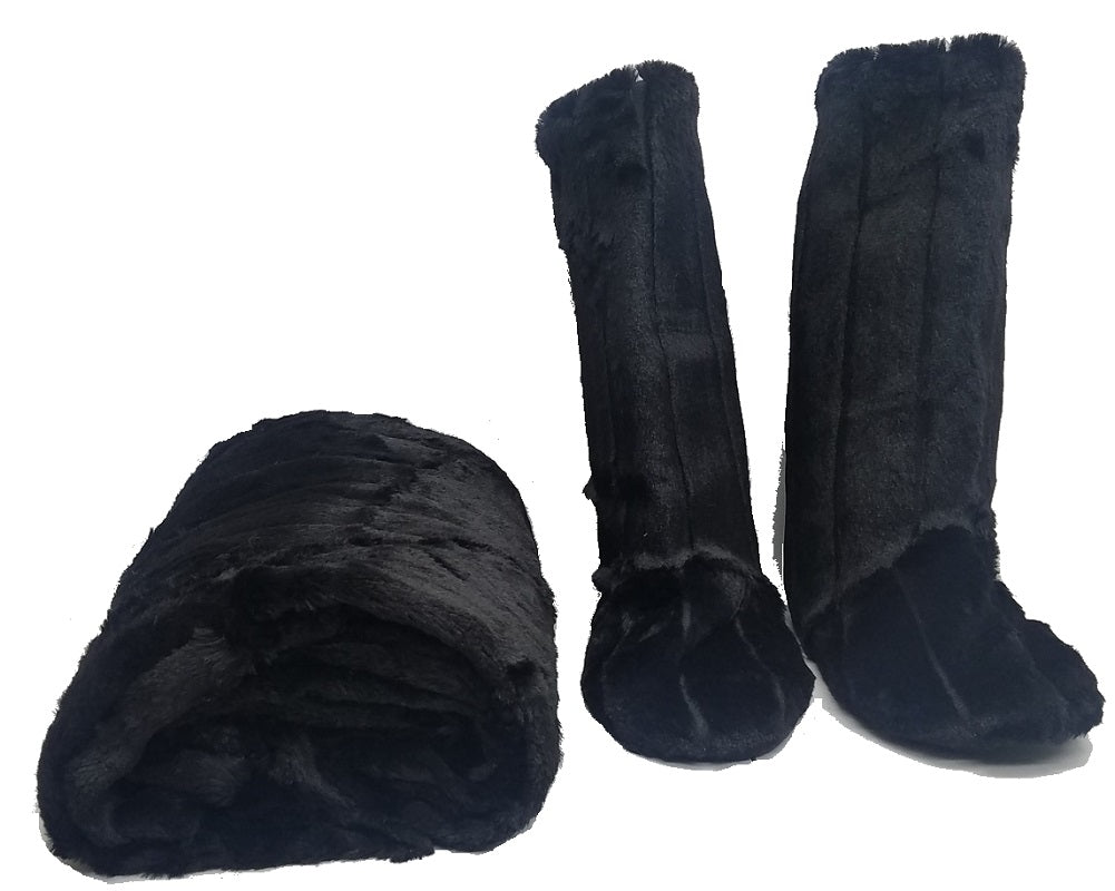 Pair of booties, attractive faux fur design. Get comfortable and show your wild side with the Adrienne Landau Faux Fur Throw and Medium Booties Set, Black Mink. This fun set takes your love of Faux furs and makes bedtime or lounging around a lazy Sunday afternoon relaxed and cozy. Let this be your fatal attraction ... the one you can't...