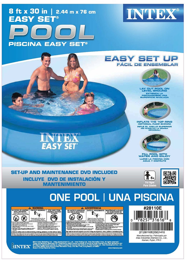 Make a splash all summer long with the Intex Easy Set 8' x 30" inflatable pool that is easy to set up and store. This pool will make your backyard the place to be all summer as your family can relax and play. Ready for water in 10 minutes, simply spread out on level ground, inflate the top ring, fill...
