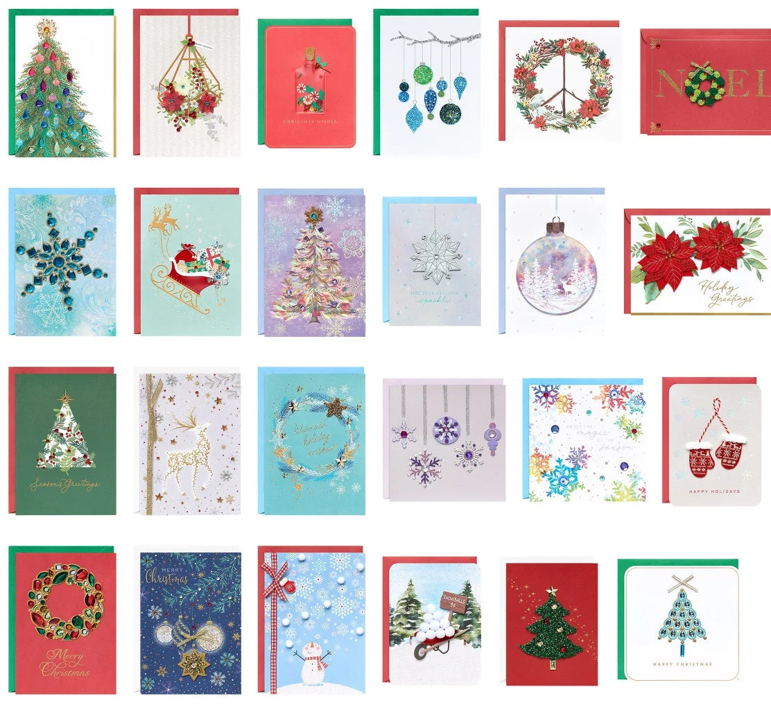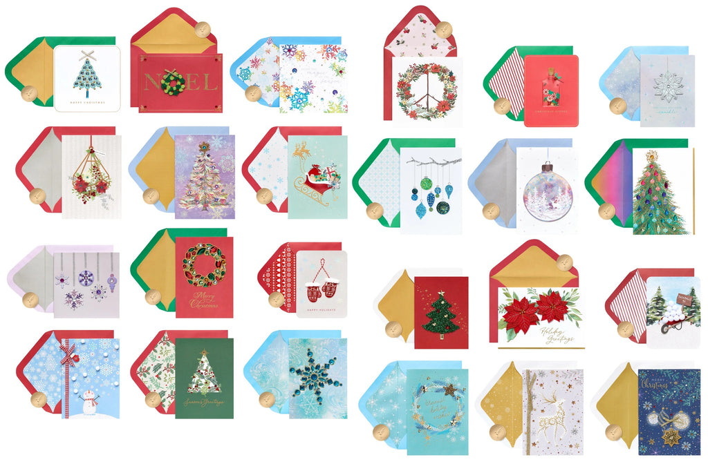 Make the season shine bright with hand-crafted Papyrus Holiday Cards. Elegant designs feature beautiful imagery and thoughtful messages ideal for a range of relationships. Embellishments such as gems, pearls, beads, felt, fabric, laser die-cuts, and metallic foils showcase exceptional artistry, while premium lined envelopes and signature gold seals add the perfect finishing touch. Papyrus Holiday Cards come in a keepsake...