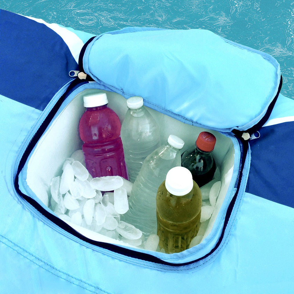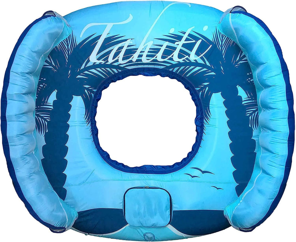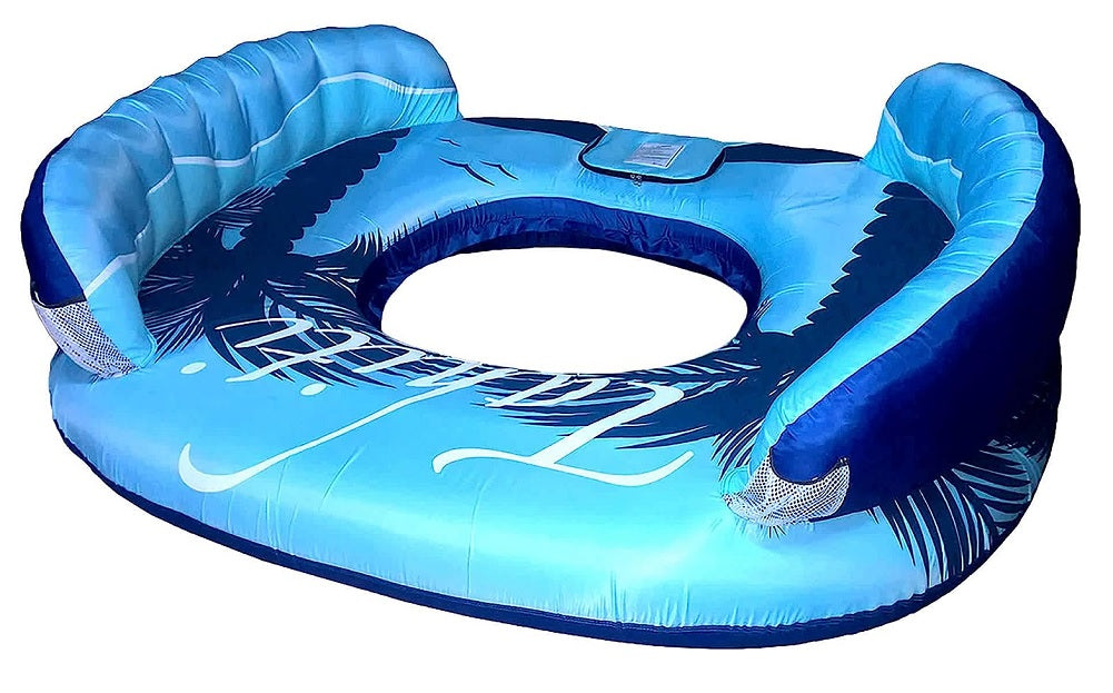 The Blue Wave Drift + Escape 4-Person Inflatable Float, Blue, line of high-end pool floats gives you and your friends plenty of room to relax in the summer sun. This luxurious float can accommodate up to 4 adults and features a covered cooler compartment to keep refreshments close at hand. Wrapped with a premium colorfast polyester fabric sporting a Tahitian...