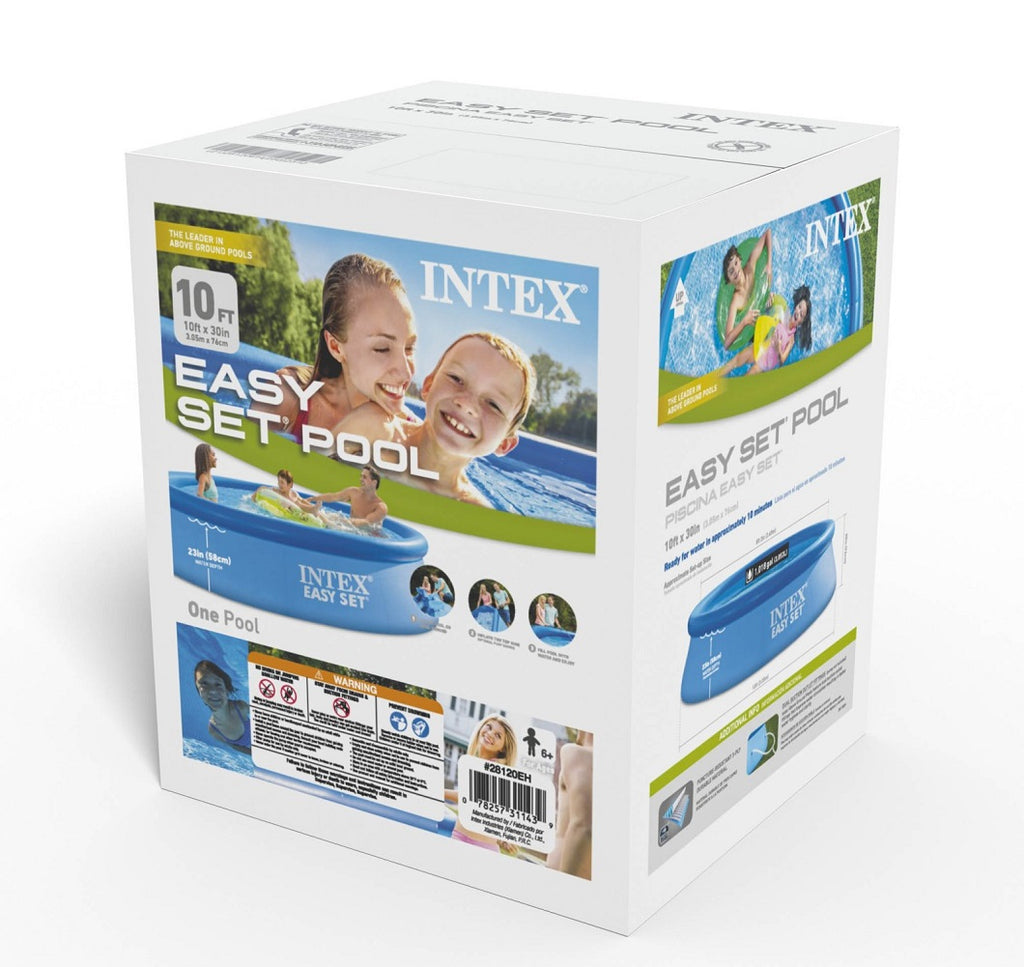 Newly shaped design 10' x 30" Intex Easy Set Pool. Make a splash all summer long with the Intex Easy Set, one of the most easy to assemble pools on the market. This pool will make your backyard the place to be all summer as your family can relax and play. Ready for water in 10 minutes, simply spread out...