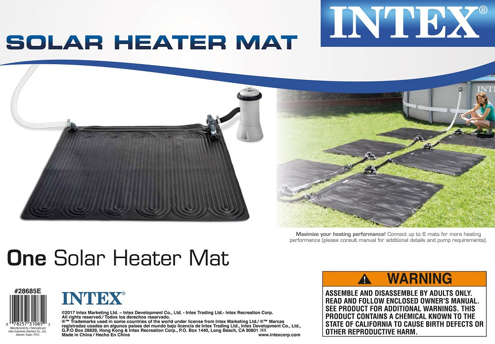 Eco-friendly solar technology increases temperature of the pool water by approx. 3 ~ 5 DegreeC (5 ~ 9 DegreeF) depending on weather condition. Simple hook up, compatible with filter pump up to 1/2 hp or pump flow rate < 2500 gal/hr (9463 L/hr). Suitable for above ground pools up to 8000 gal (30,280L) may need up to 6 mats.. 1m...