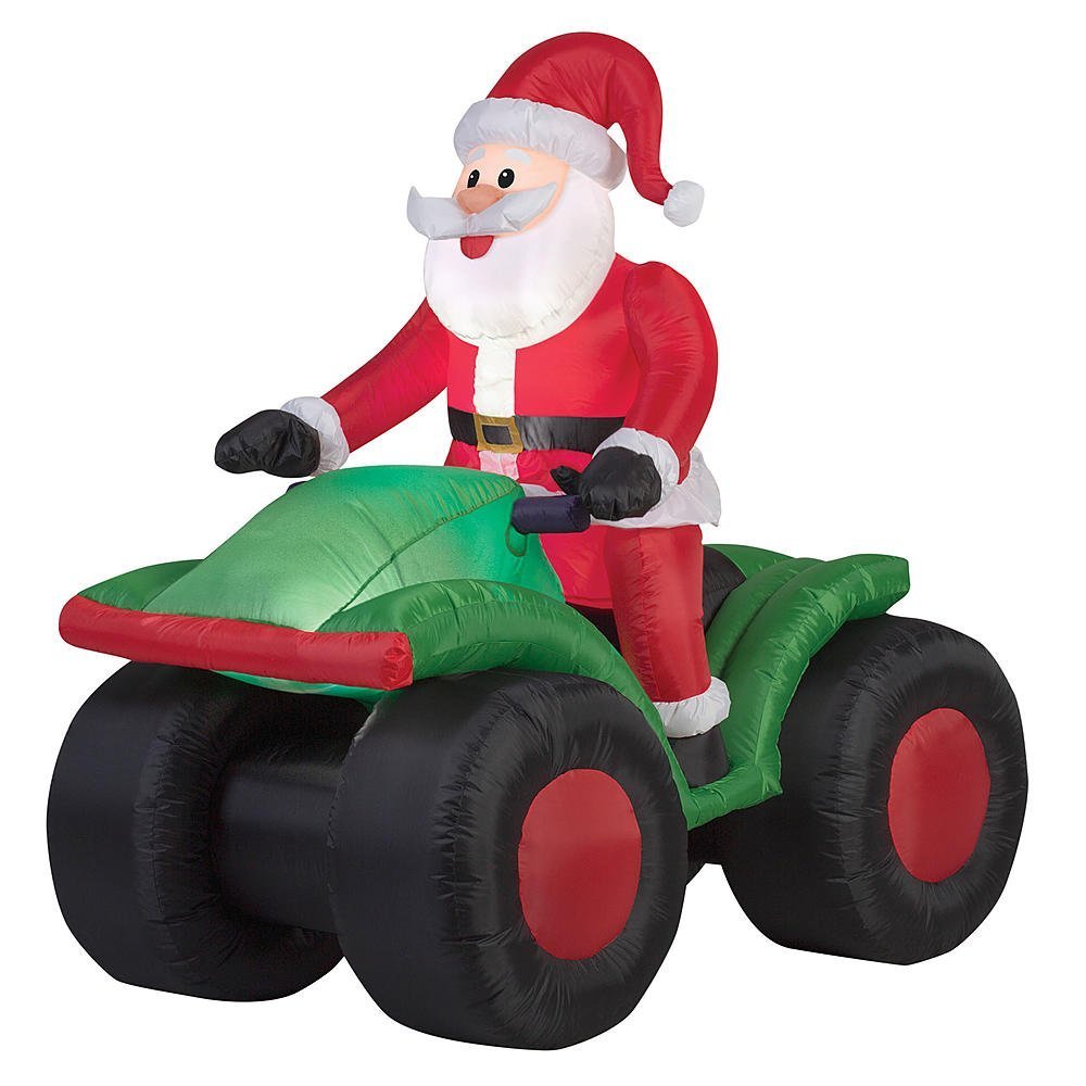 This adorable Airblown Santa on ATV inflatable character is an adorable greeting for your neighbors and holiday guests. Product Features: Lights up. Self-inflates in seconds. Deflates for easy storage. Includes everything needed for set-up.