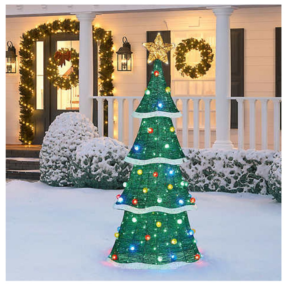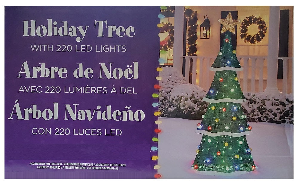 Add festive flair to your holiday decor with this classic holiday tree decorated with lighted multi-color spheres! The 72" LED Holiday Christmas Tree with 220 LED Lights is lit with warm white and multi-colored lights. A gold star adorns the top of the tree to complete the look. Features: 156 warm white LED lights, 64 multi-colored LED sphere ornaments lights....