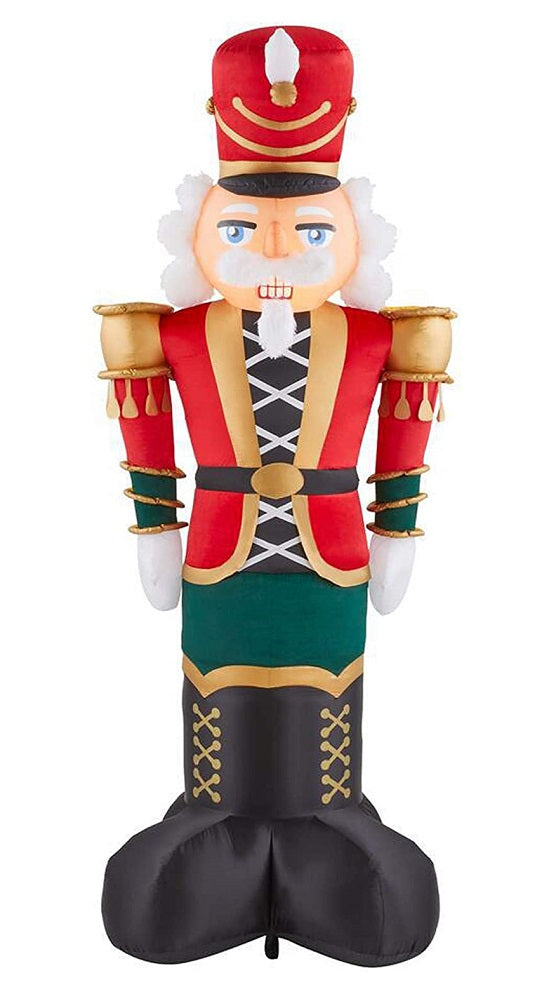 Deck the yard with a Airblown Inflatable Luxe Nutcracker in luxurious Christmas attire. Featuring metallic and fuzzy fabric accents, this impressive outdoor inflatable makes a delightful addition to your Christmas decorations. Setup is super simple. Just plug it in, stake it down and watch the magic unfold. Includes everything needed for easy outdoor setup.