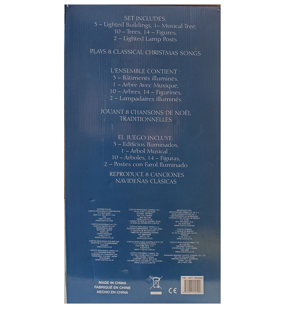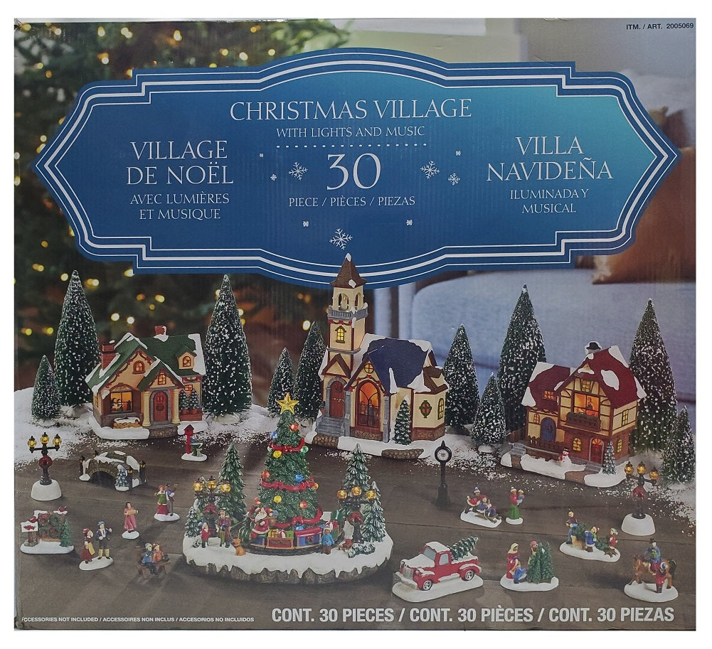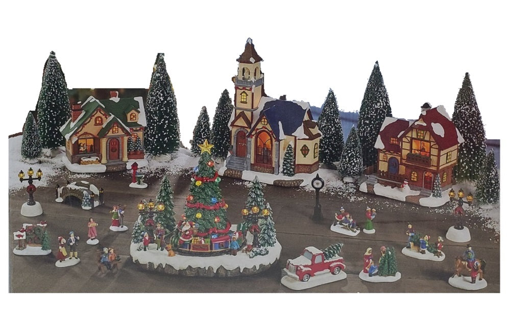 Bring the beauty of the holidays home this season with this Christmas Village with Lights and Music 30-Piece, a charming illuminated village scene. From street vendors to horse drawn sleighs this festive scene frames the main event at the town square’s Christmas Tree… Santa. In addition, he is riding his train with gathering of children and carolers. This magical Christmas...