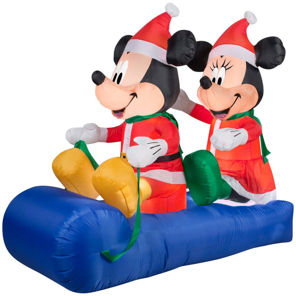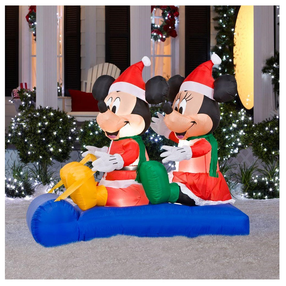 This Disney 5 FT Inflatable Mickey and Minnie's Sled Scene Christmas Decoration lights with a C7 light bulb creates a glowing nighttime display perfect for guests this holiday season. A cute, festive addition to your yard, it self-inflates in seconds for easy set up. Made of weather-resistant material for a long-lasting use, tethers and yard stakes are included to keep...