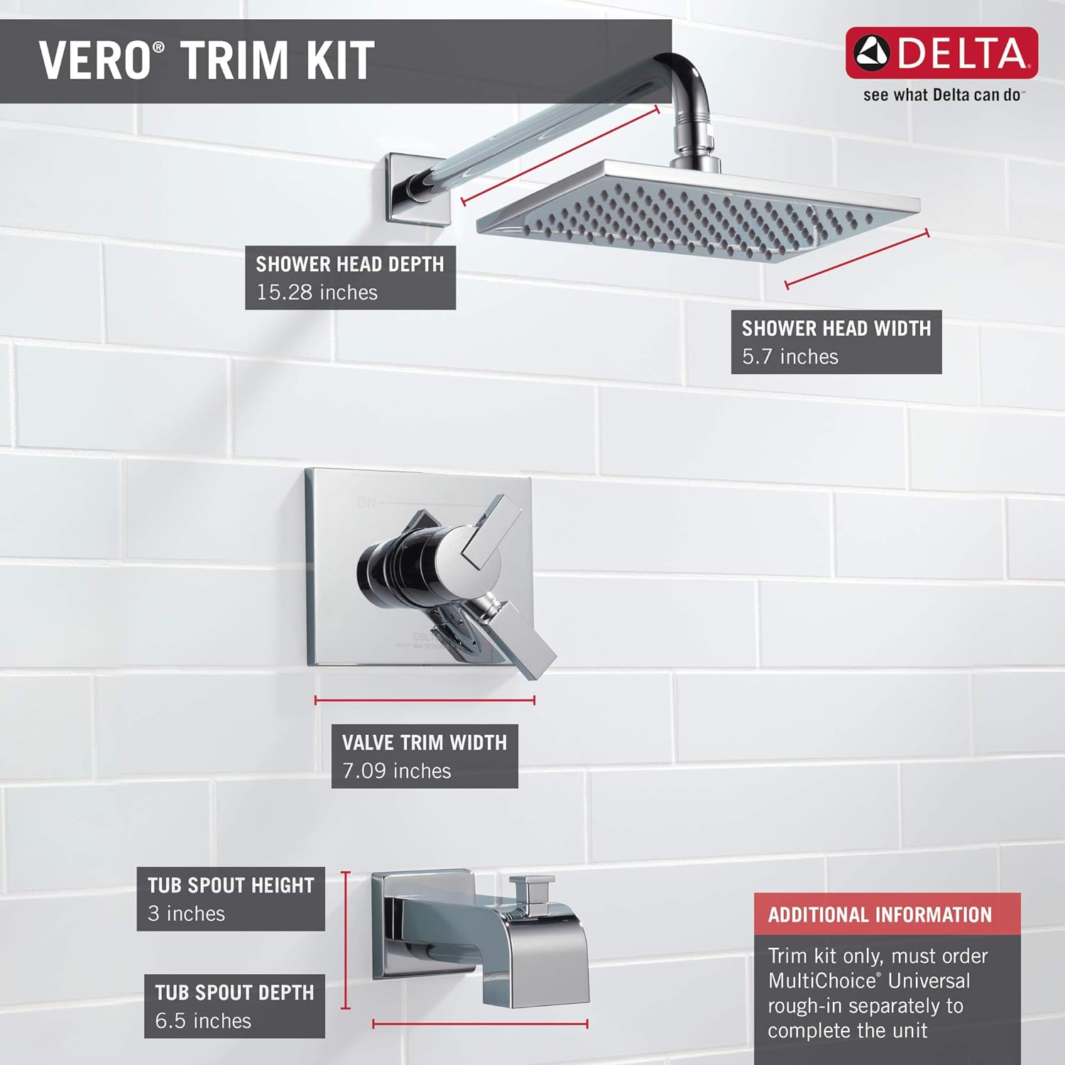 Monitor pressure balance valve keeps water temperature within a safe ± 3.6⁰ F (± 2.0⁰ C), helping to protect you from sudden changes in hot or cold water pressure. The Delta MultiChoice Universal Shower Valve (included) is compatible with most Delta shower trim kits, so you can switch out your shower fixture anytime without tearing out expensive tile or altering...