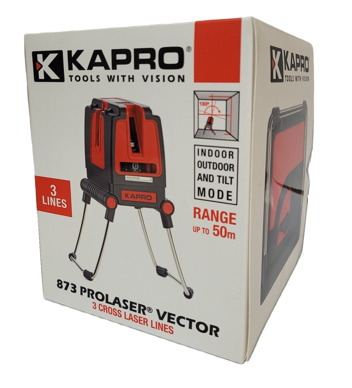 The Kapro Prolaser Vector 873 laser is ideal for aligning tiles, cabinets, borders, moldings, trims, and installing doors and windows. It is designed with strong folding legs for angle mounting and height adjustment. The Kapro 873 features 2 intersecting vertical and 1 horizontal red laser beams which are significantly brighter and easier for the human eye to detect than red...