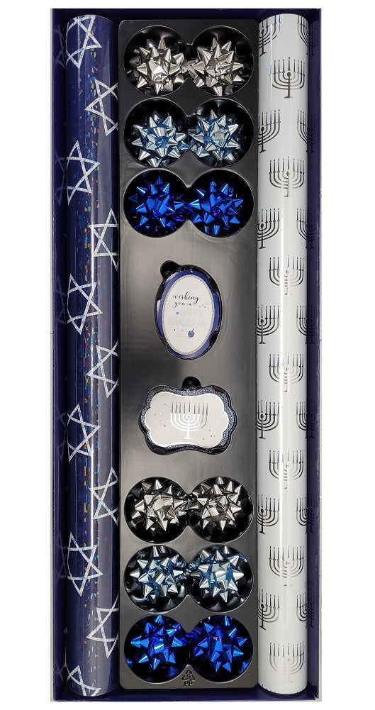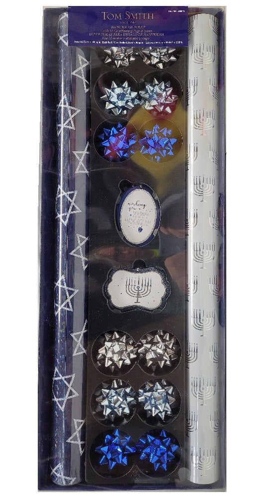 Since 1847, Tom Smith has been creating beautiful, coordinating tags and bows. The Tom Smith Hanukkah Wrap with 2 Rolls of Wrap with 12 Coordinating Tags and Bows features beautiful blue, white & silver. One of the Hanukkah Wrapping Paper is white with silver menorahs. The other is blue with white menorahs. The set pulls every gift together with coordinating...