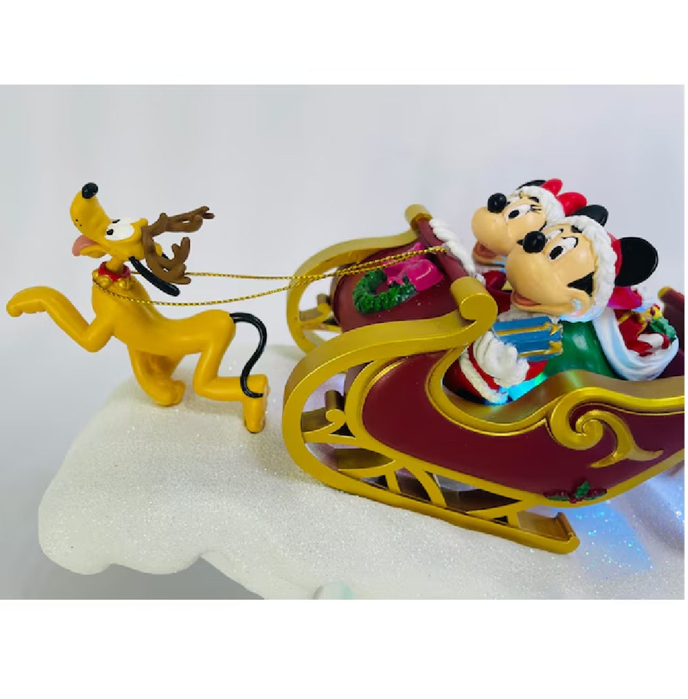 Introducing the magical Disney Holiday Sleigh, a festive tabletop masterpiece that enchants with realistic textures, vibrant colors, and exquisite hand-painted details. Immerse yourself in the holiday spirit with the luminous glow of LED lights, the harmonious melodies of 8 classic Christmas carols, and captivating animations. Resting on a glittery snow base, this enchanting scene features Mickey Mouse and Minnie Mouse,...