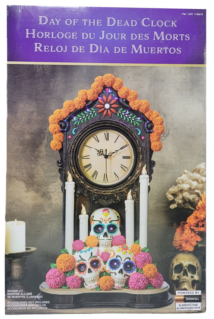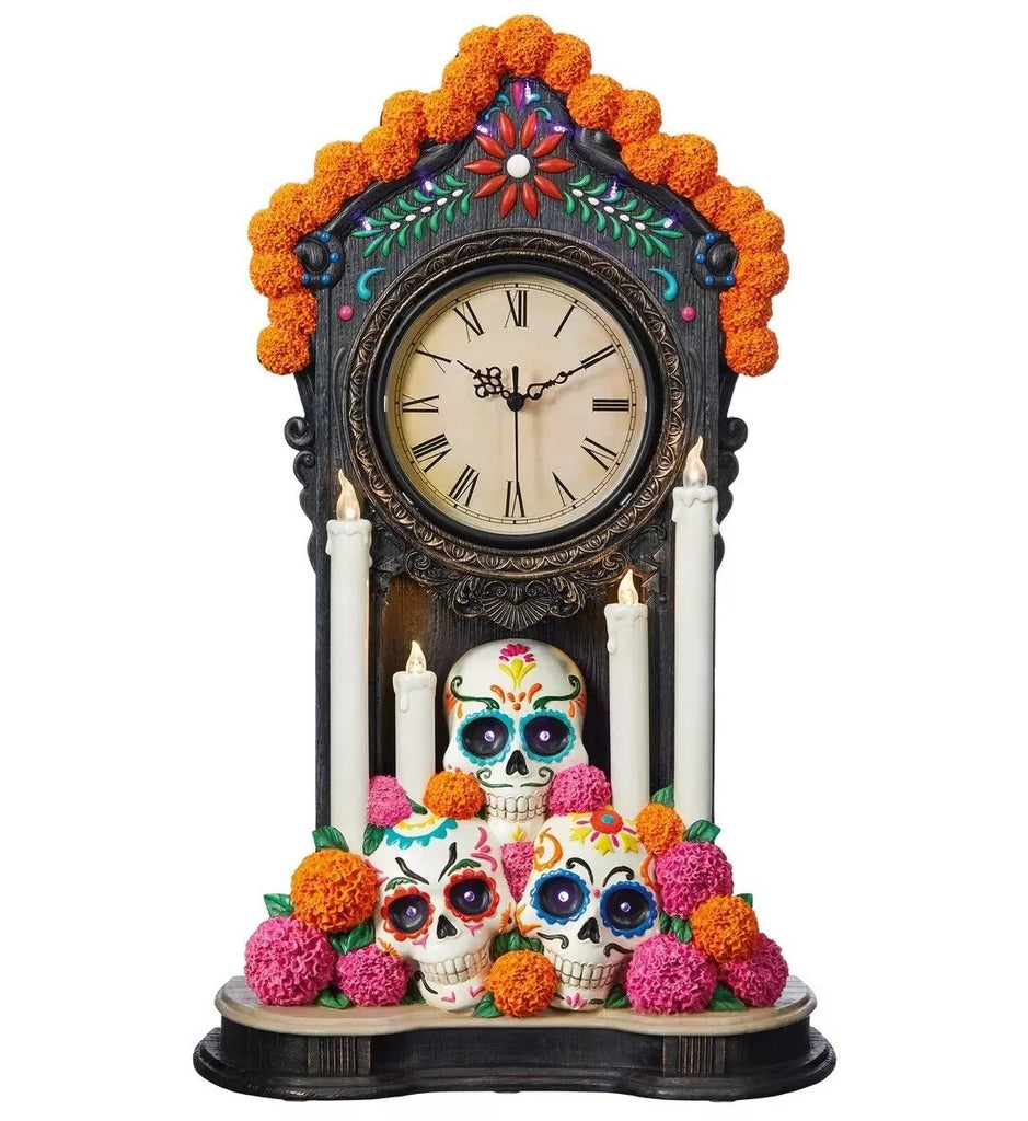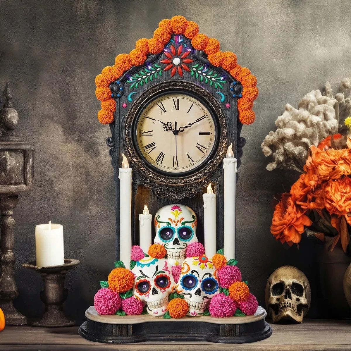 Infuse your home with the spirit of celebration and honor the beauty of tradition with our stunning Day of the Dead resin tabletop centerpiece with clock. Crafted with meticulous attention to detail, this exquisite centerpiece not only keeps time but also illuminates your space with vibrant LED lighting, creating an enchanting ambiance that captures the essence of this beloved cultural...
