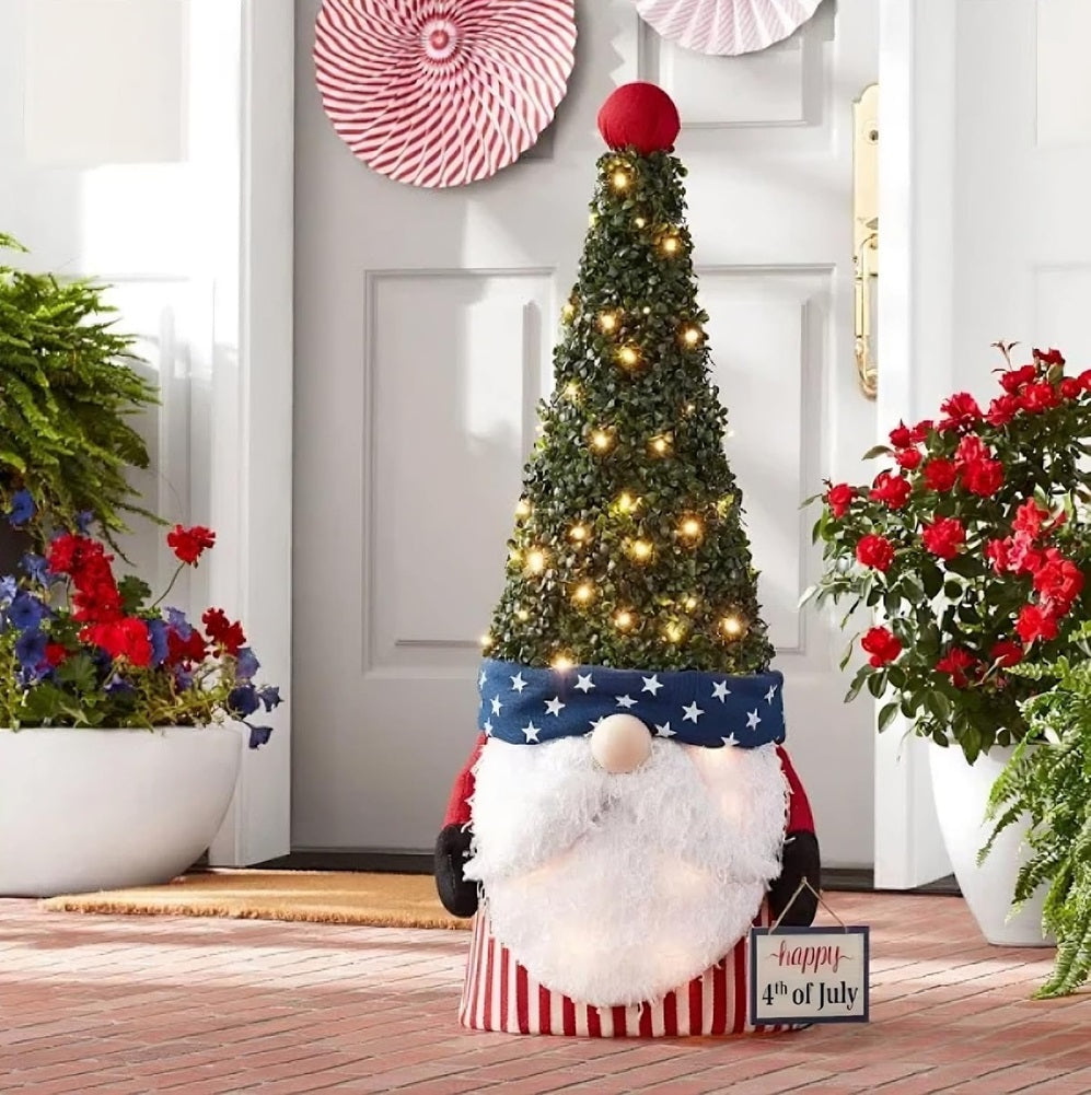 Get into a seasonal mood with the whimsical Member's Mark 40" Pre-Lit Gnome Americana Topiary. This bright and cheery piece is a fun addition to your summer decor. It features a gnome character in full patriotic mode, complete with a fluffy white beard and a tall topiary hat at the top. A charming addition to a backyard picnic, this fellow...