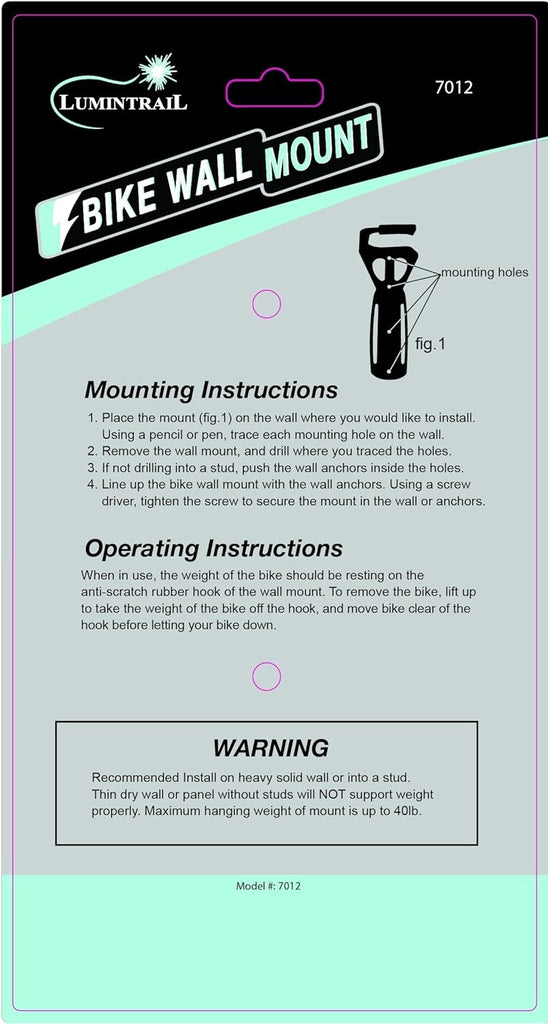 Don't let bike storage be a problem for you. Get your bike off the floor and out of the way by going up. The Lumintrail vertical bike rack makes it easy to load and unload your bike while freeing up much needed space in your apartment or garage. The heavy duty rack features an anti-scratch rubber hook to prevent damage...