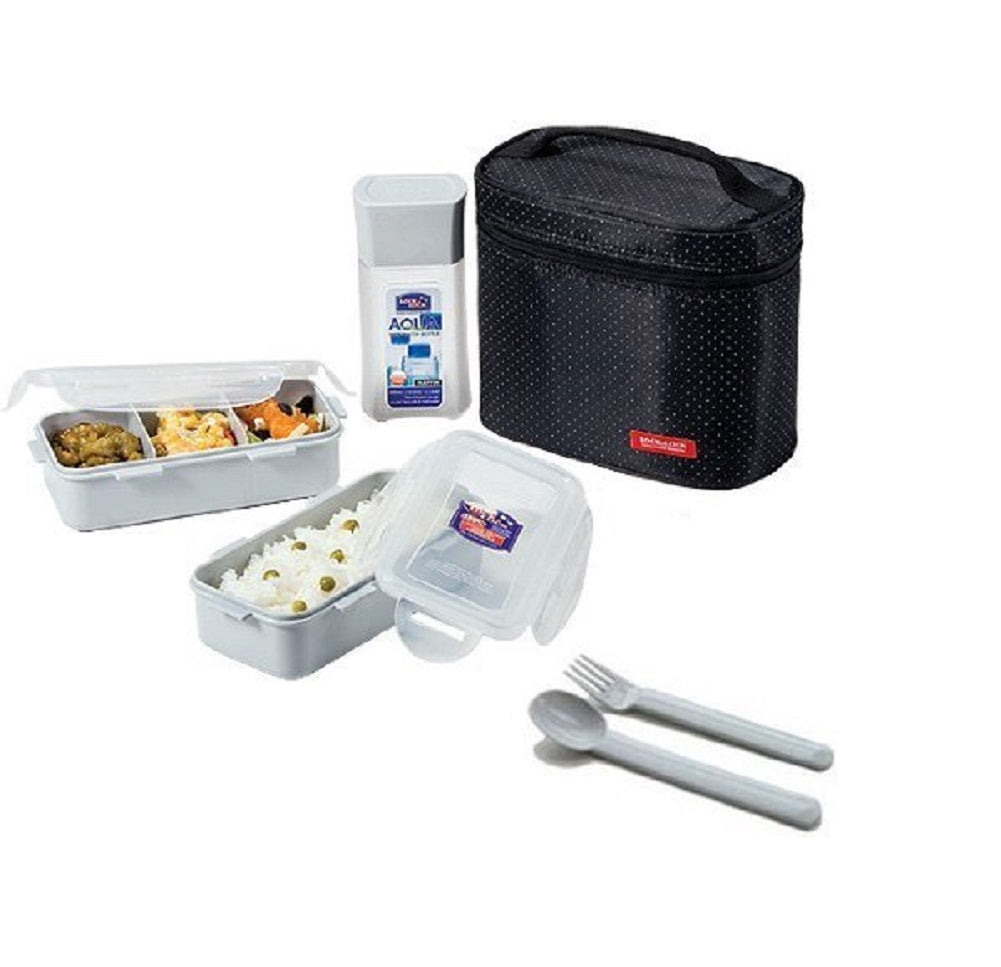 Lock&Lock Lunch Bag Set 2-Pieces, Water Bottle, Spoon & Fork, Black w/ Silver, is BPA Free, classic food-storage containers. It features an innovative four-sided locking system for an airtight seal and watertight storage so food stays fresh longer and there's no messy leaks or spills to worry about. The four sides of the locking system promote an airtight seal due...