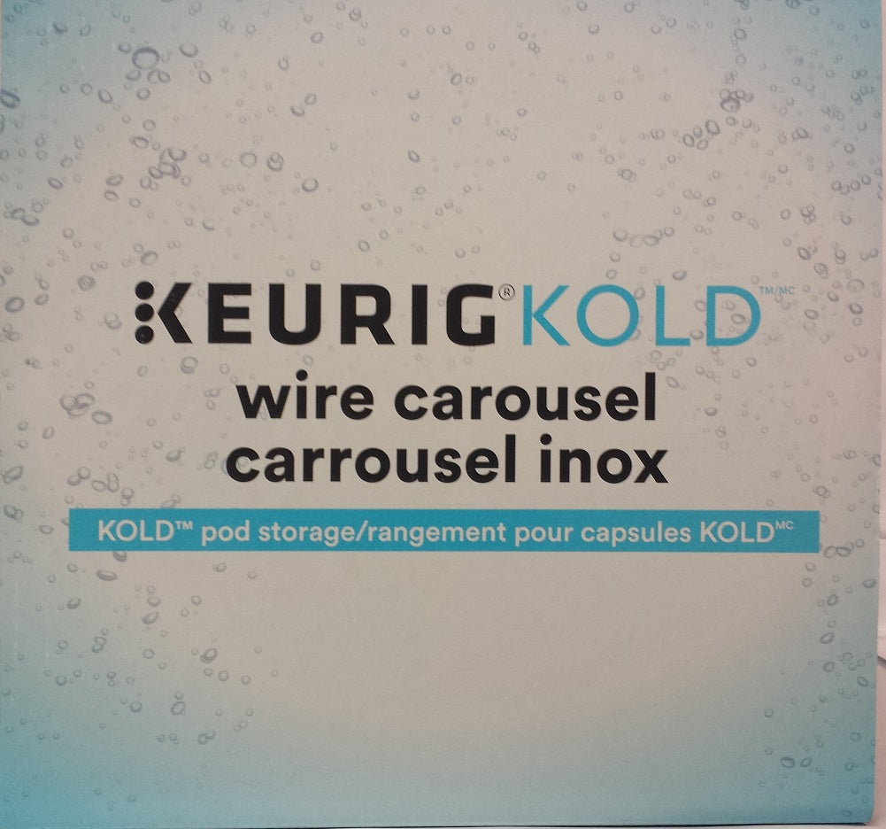 This Keurig KOLD Wire Carousel Pod Storage, Silver, is the ideal way to keep your pods in order without cluttering your countertop. The accessory has an eye-catching chrome finish that will lend a classic look to your kitchen. The Keurig carousel holds up to 32 KOLD pods and takes up minimal space. It rotates fully for easy access to all...