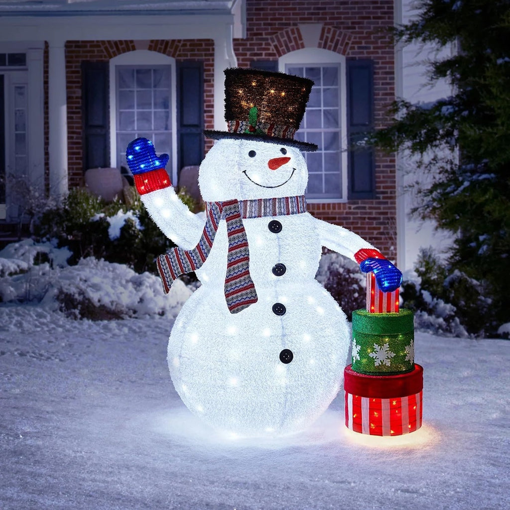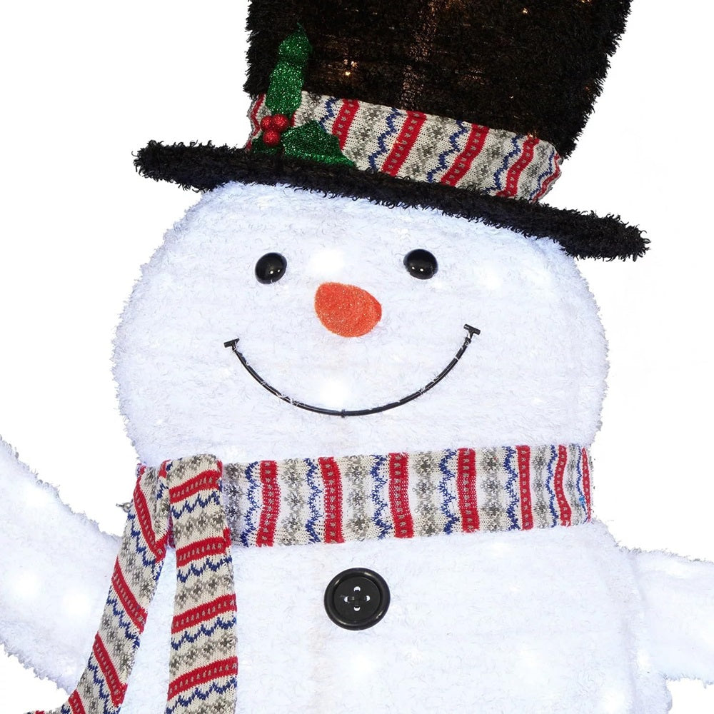 Transform your holiday decor with the 6' Pre-Lit Prismatic Snowman. Club. Crafted with innovative materials, this snowman features a dazzling prismatic effect enhanced by cool white LED lights with a twinkle effect. Standing 6 feet tall, it boasts a charming design complete with a top hat, tinsel scarf, black buttons, and a cheerful smile, making it the perfect centerpiece for...