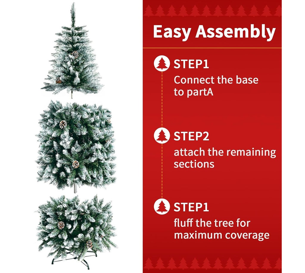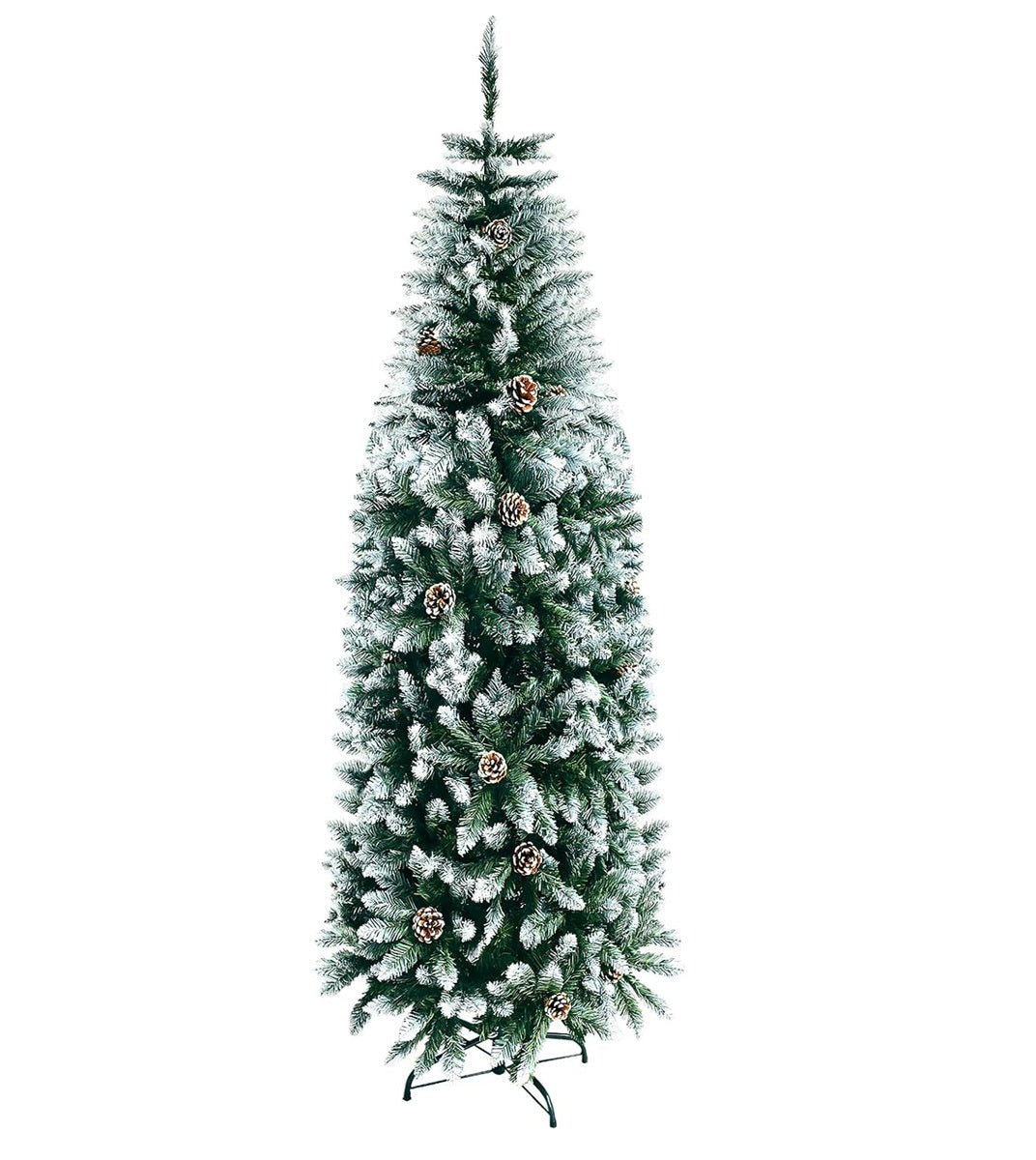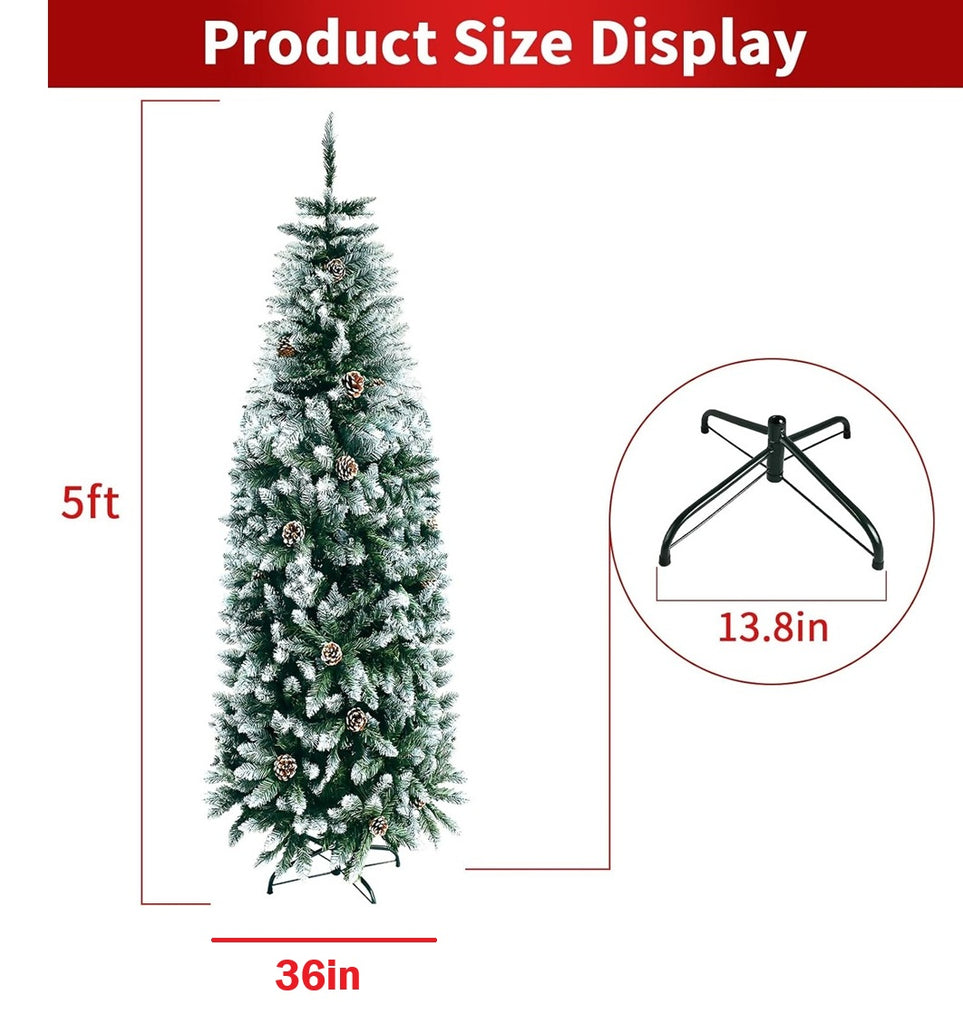 Add elegance to any room with the MuRealy 5ft Pencil Slim Artificial Christmas Tree with Pinecones and Metal Stand. The slim pencil Christmas Tree features a special flocked snow design that creates a unique wintry feel, bringing the snowy atmosphere indoors. The addition of pinecone decorations adds realism and enhances the overall look of the tree. With 400 branches, our...