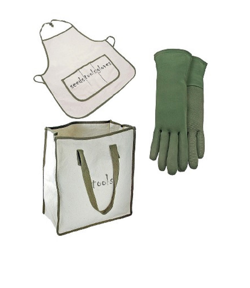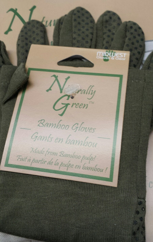 With the Naturally Green Bamboo Gloves, Tote Bag & Full Apron, this set gets you three pieces from Naturally green. The Full Apron is made of all natural cotton. The Tote Bag is also made of natural cotton. The Natural Green Bamboo gloves are made from Bamboo pulp.