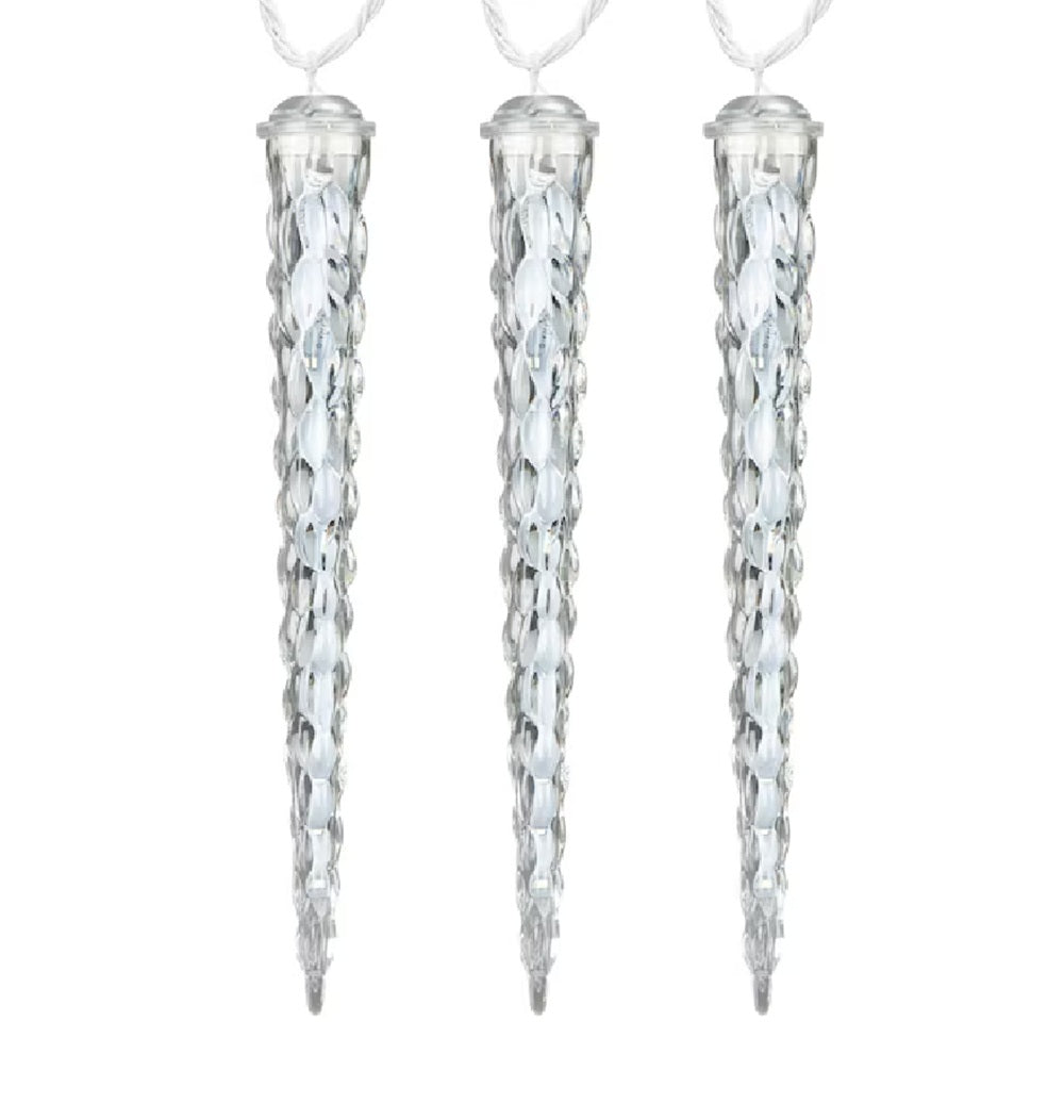 • Set of 10 icicle bulbs in graduated sizes (11" 7" 9") with with clear covers