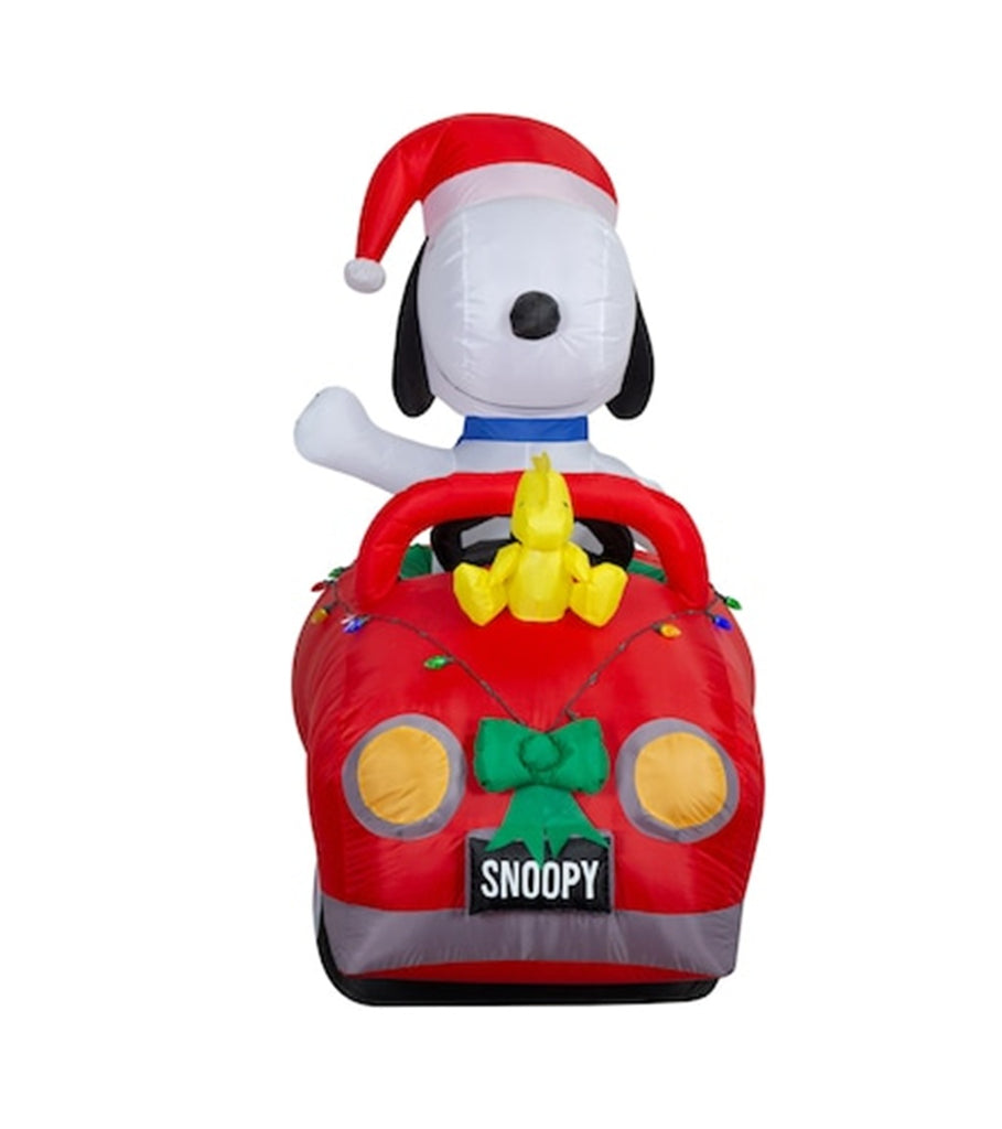 Peanuts fans will love this adorable Inflatable Snoopy and Woodstock car scene! Featuring Snoopy at the wheel of a red car with a "SNOOPY" license plate, this amazing Peanuts Christmas car includes Woodstock on the hood and a multicolor light string. It makes a spectacular addition to your indoor or outdoor Christmas decorations. Set up is a snap for the...
