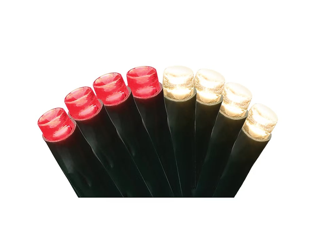 GE Color Choice LED MicroBright 150-count color changing light set on storage reel. Use the control box to choose between red, warm white, or light show settings. 36-Inch lead wire, 3.5-inch lamp spacing, 4-inch coaxial end connector, 43.4-feet lighted length, and green cord set. Can connect up to 4 sets. Features 8 in 1 Lighting Effects: multi, warm white or...