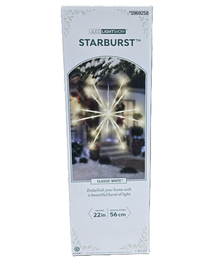 Add magical lighting with StarBurst lighting that hangs from trees, ceilings, rooflines—or anywhere you enjoy Christmas lights. This 22-in stars features dramatic, coordinated bursts of warm white light with five dazzling effect options. StarBurst adds showstopping light to your indoor or outdoor decorations. Collapses for easy, compact storage. Requires electrical outlet for power.