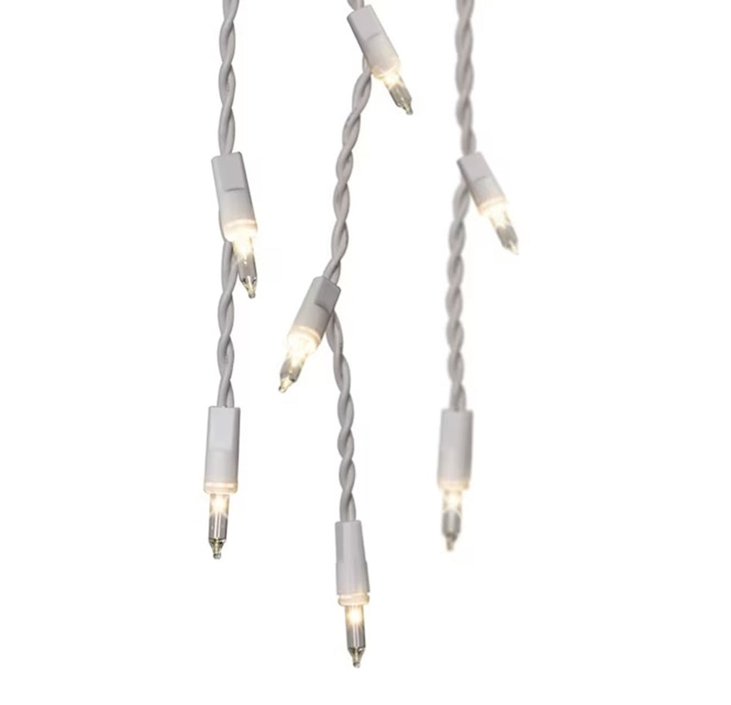 Decorate your roofline, shed, and home with the GE String-A-Long 300 Icicle-Style Lights Clear Lights 13.2-feet Length. The beautiful lights are clear with the white wire. Features: GE 5-mm incandescent Christmas icicle lights. 300-Count, clear incandescent lights. 13.2-Feet lighted length, white cord with fused plug. Can connect up to 3 sets. Replacement bulbs and fuses included for added convenience. For...